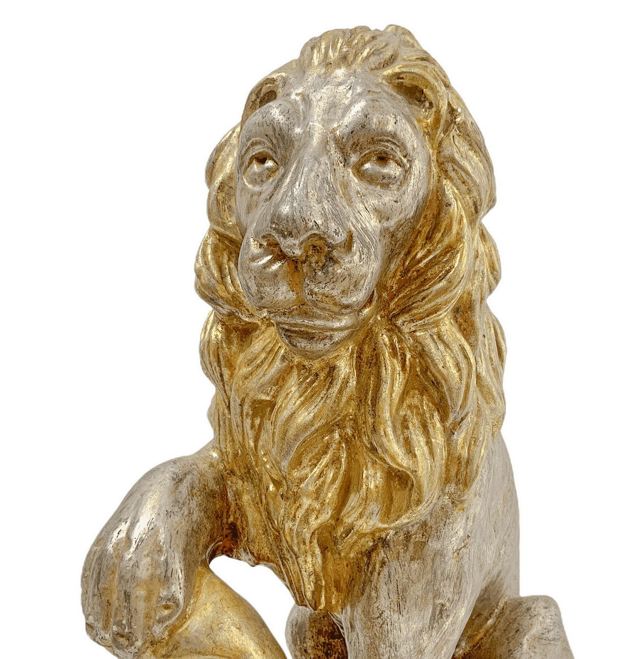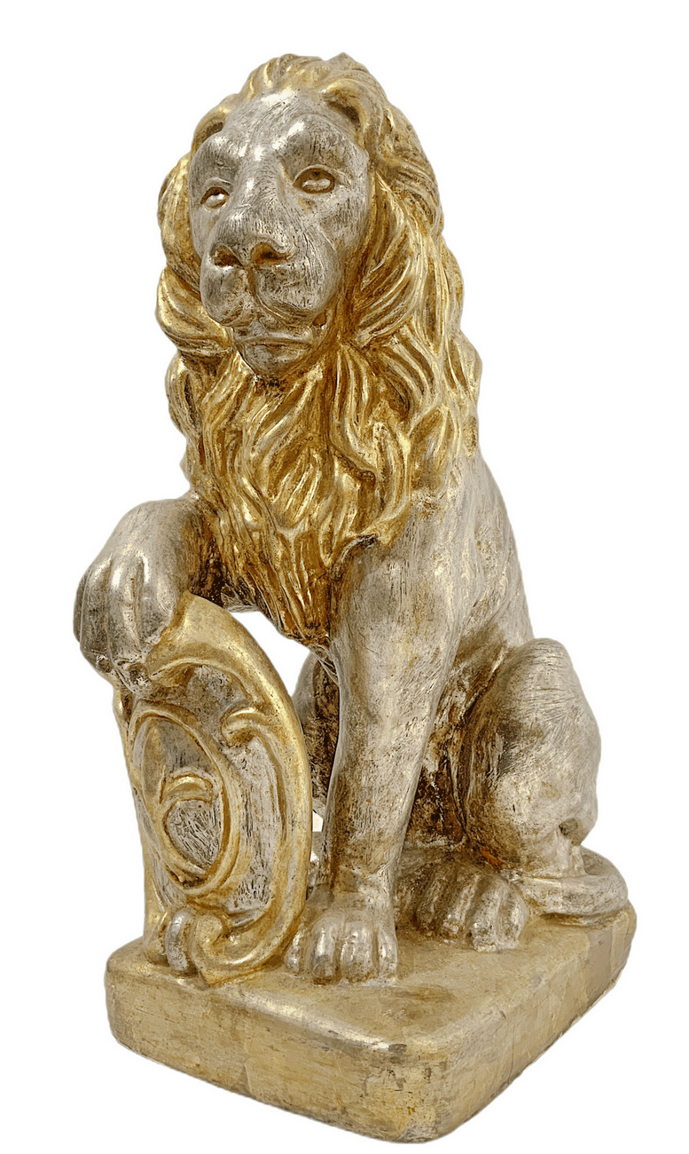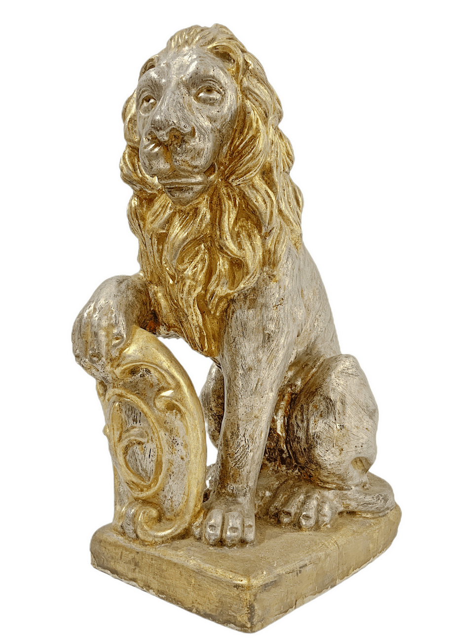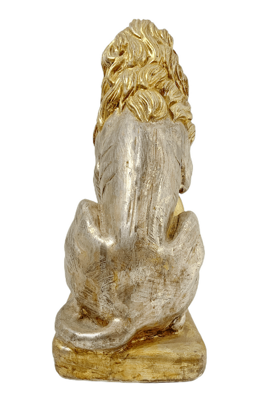 Coppia di leoni Marzocco di Firenze in legno dorato e argentato, inizi XX secolo. H cm 40, base 23x13
