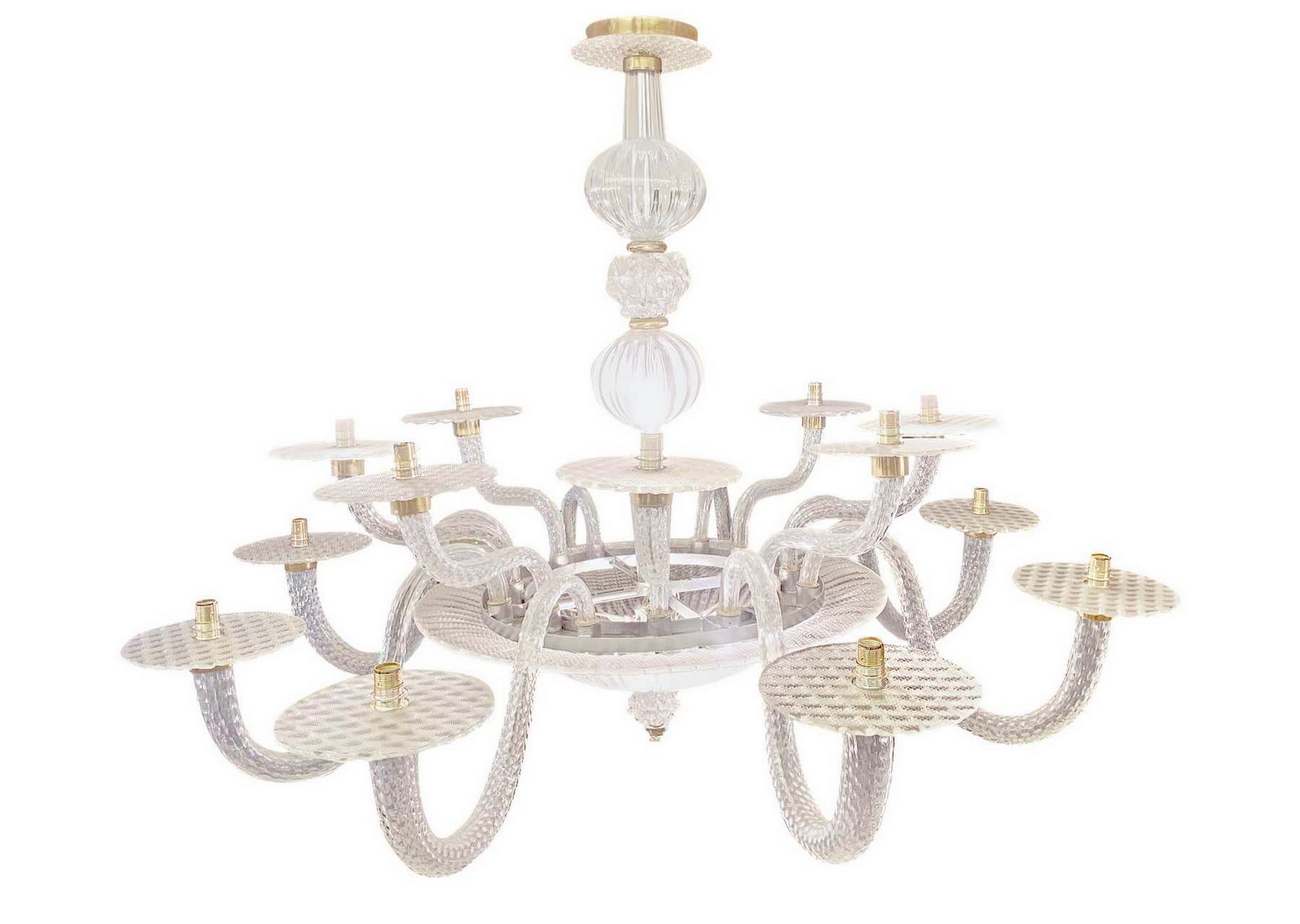 Lotto 11 | Grande lampadario in vetro di Murano, 16 luci più 3 luci centrali in coppa. H cm 120. Larghezza cm 155