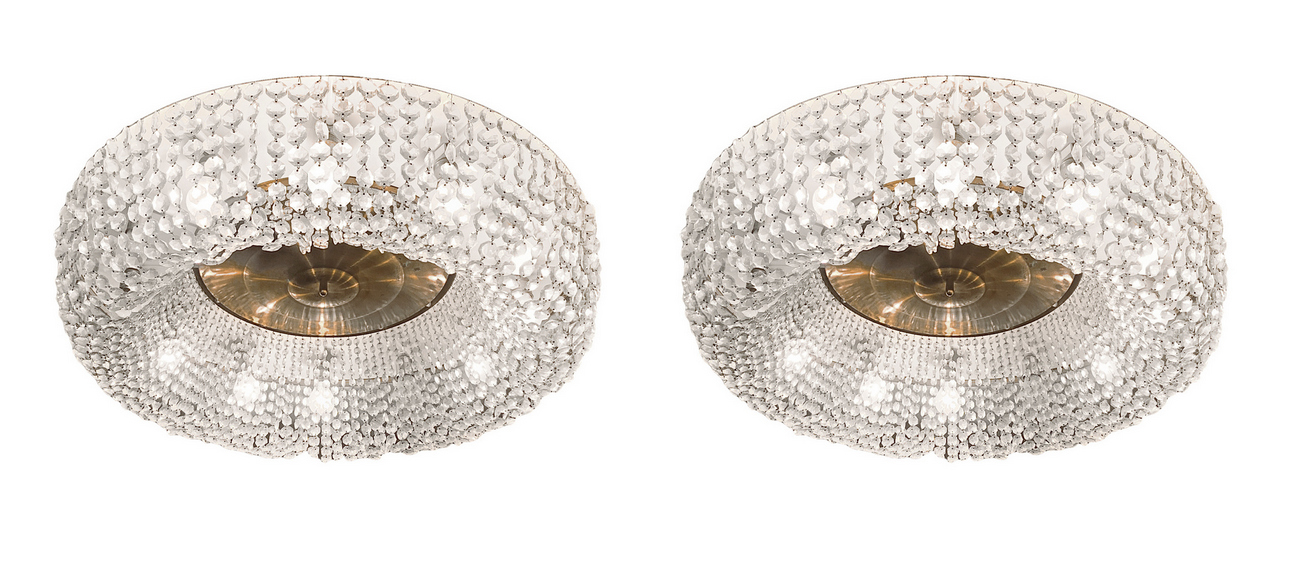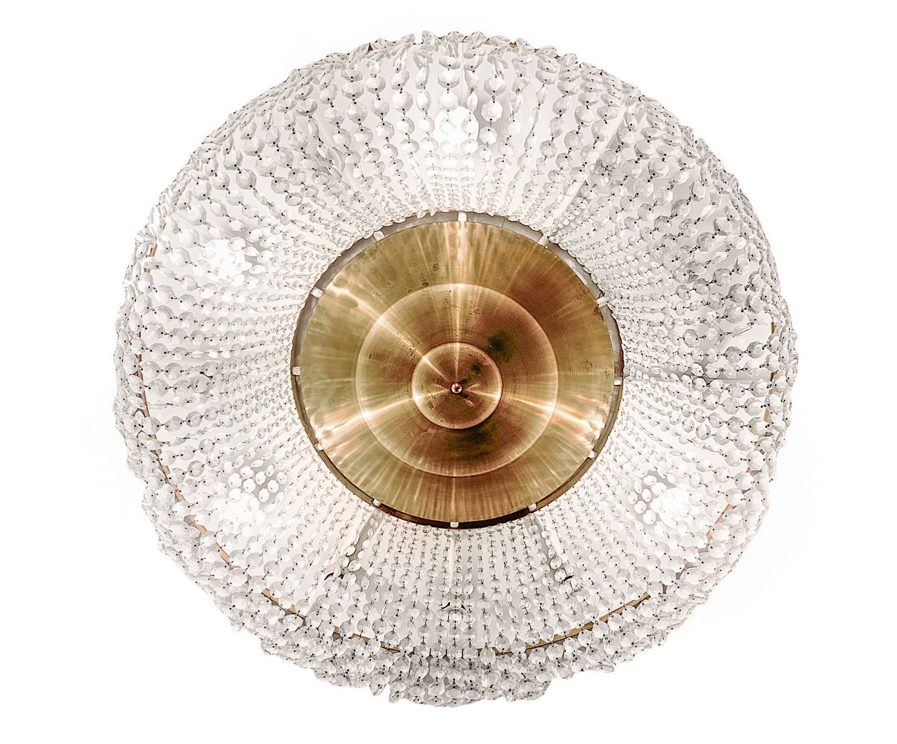 Coppia di plafoniere da soffitto in ottone e brindoli a rosetta, XX secolo. H cm 30. Cm diametro 100