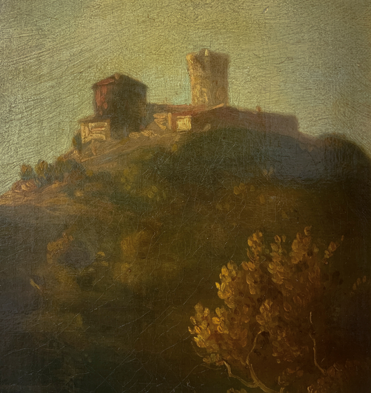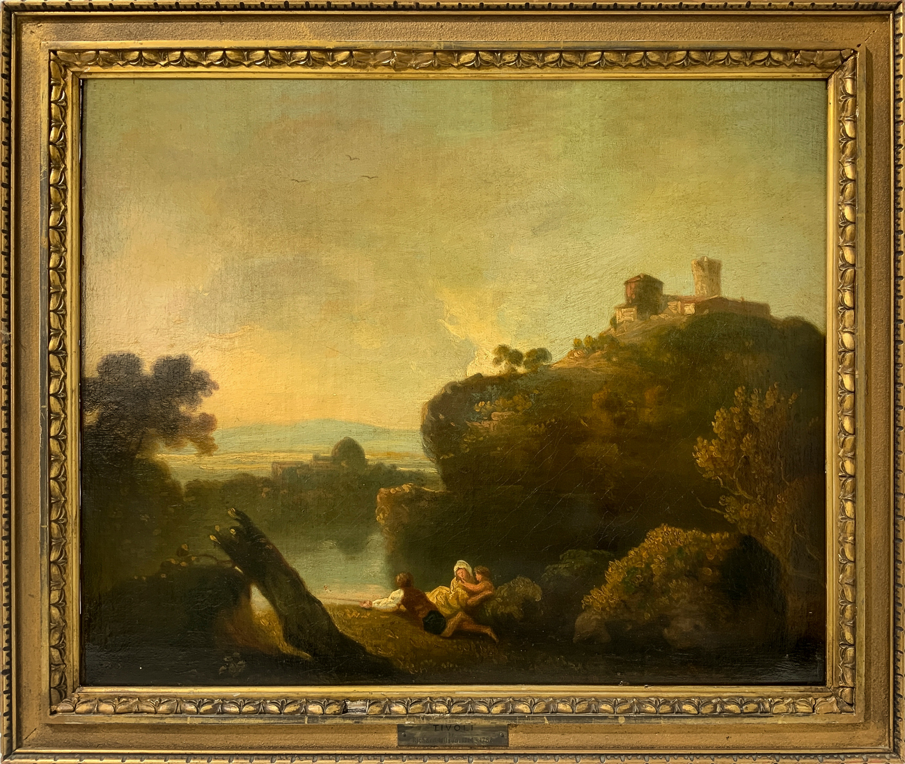 Dipinto olio su tela raffigurante Tivoli, attribuito a Richard Wilson (1714-1782). Cm 44x53 in cornice cm 53x62.