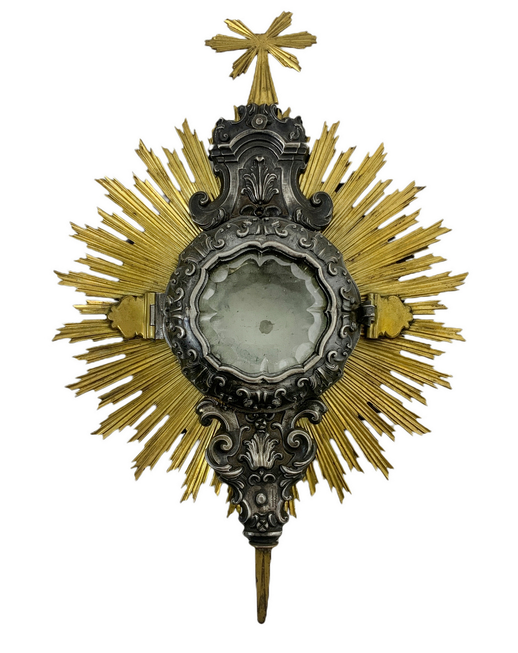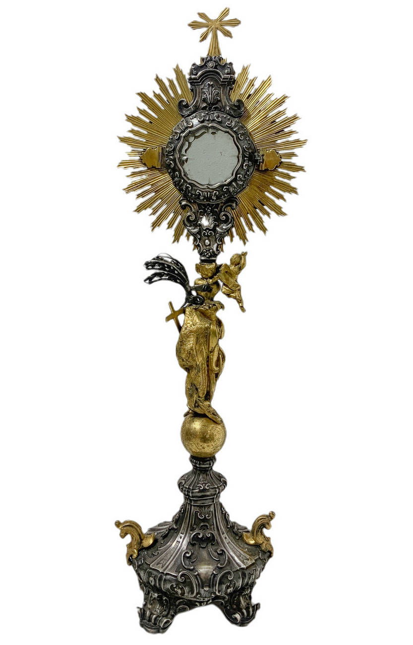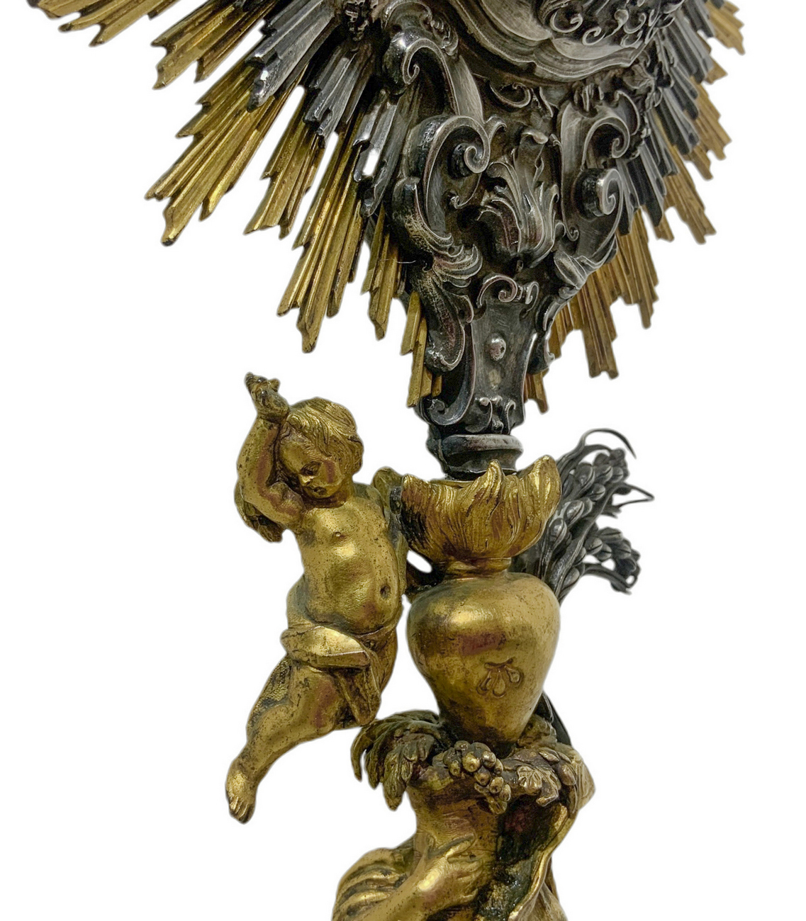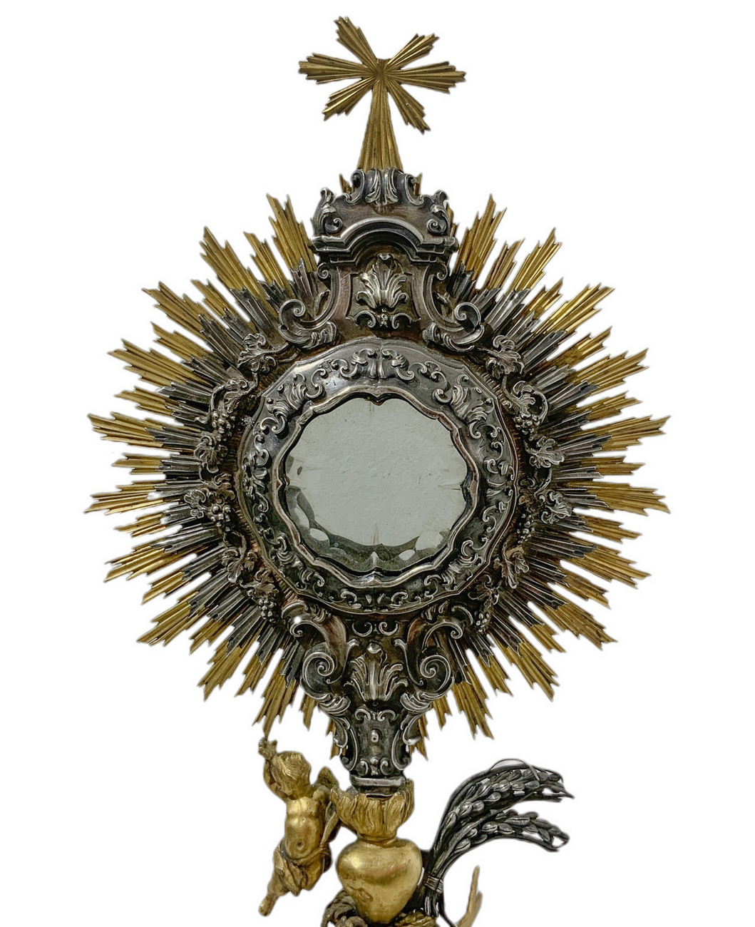 Ostensorio in argento e argento vermeil, altezza cm 70, kg 2.352 Opera di elegante e raffinata fattura barocca in argen