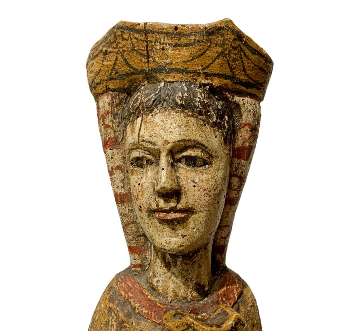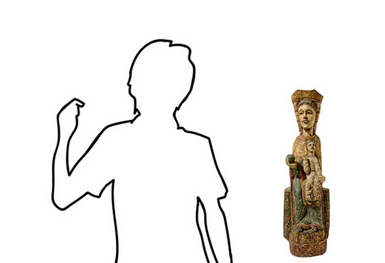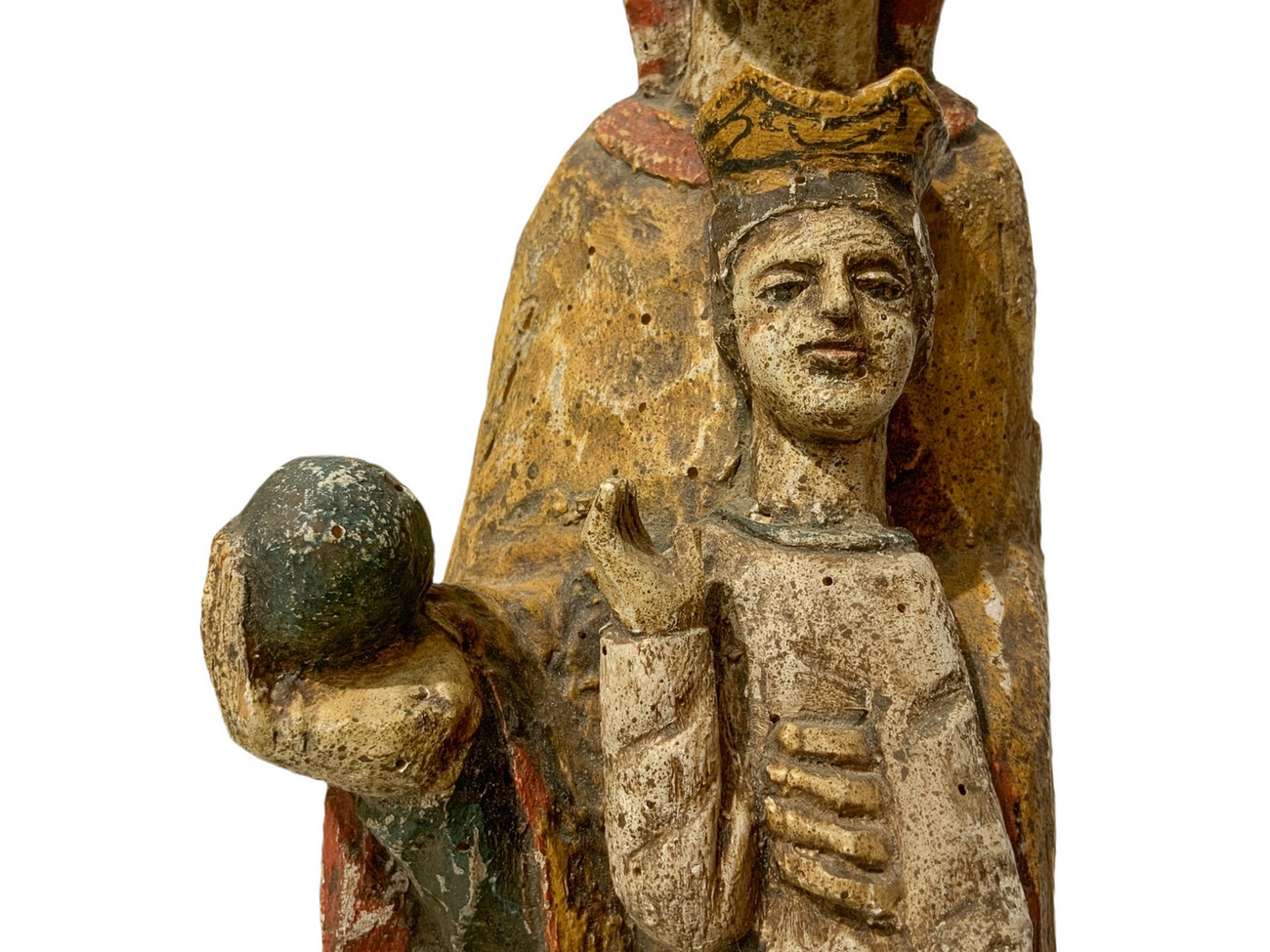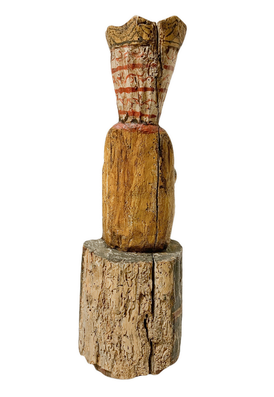 Statua lignea raffigurante Madonna in trono con bambino. H cm 58. Base cm 18