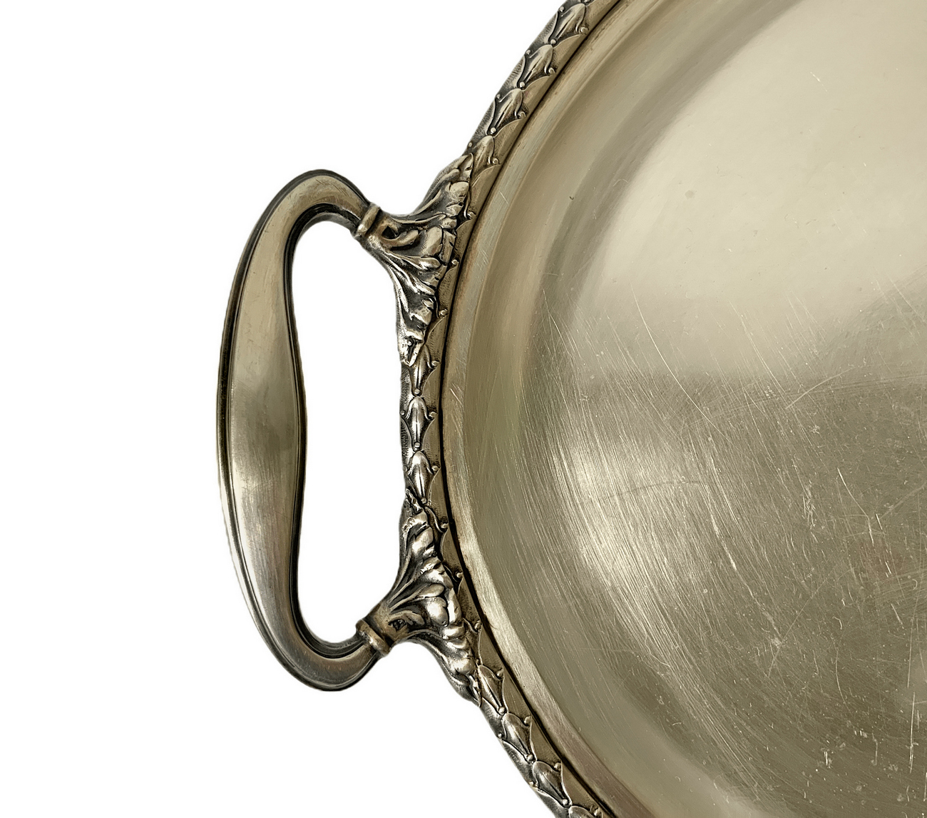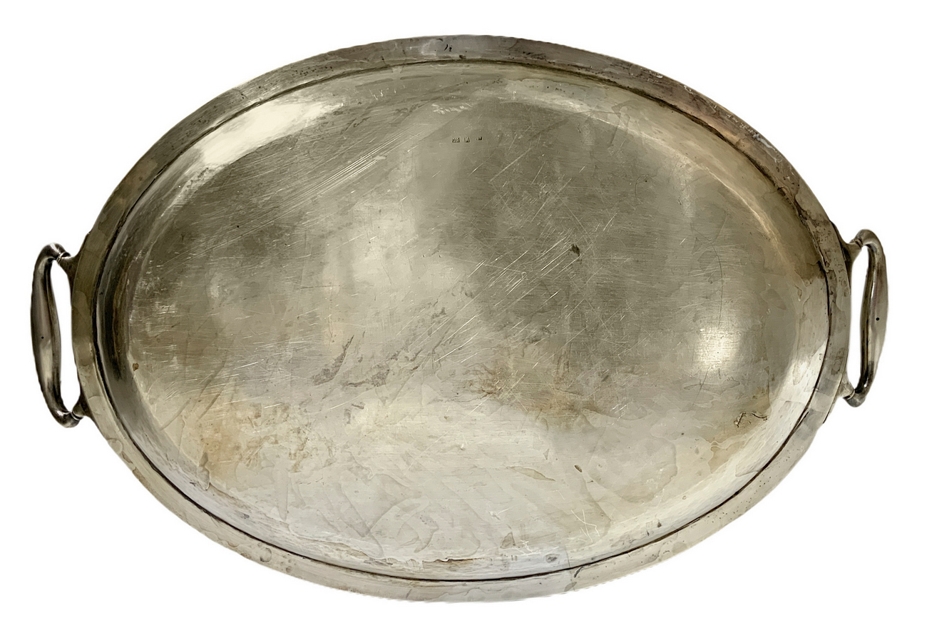 Vassoio ovale in argento 800, primi XX secolo. Con manici. Gr 1970 Cm 57x37