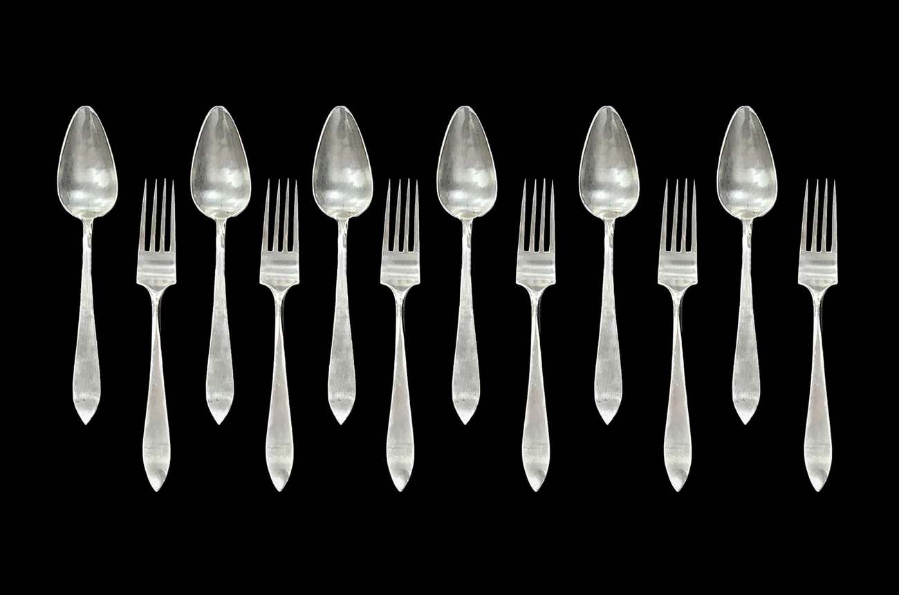 Lotto 69 | Servizio di posate in argento composto 6 forchette (600 gr) e 6 cucchiai, argentiere Avolio.