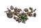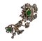 Spilla tralcio di fiori e foglie in oro e argento con 1 radice di smeraldo centrale e 2 laterali, e rosette coronè