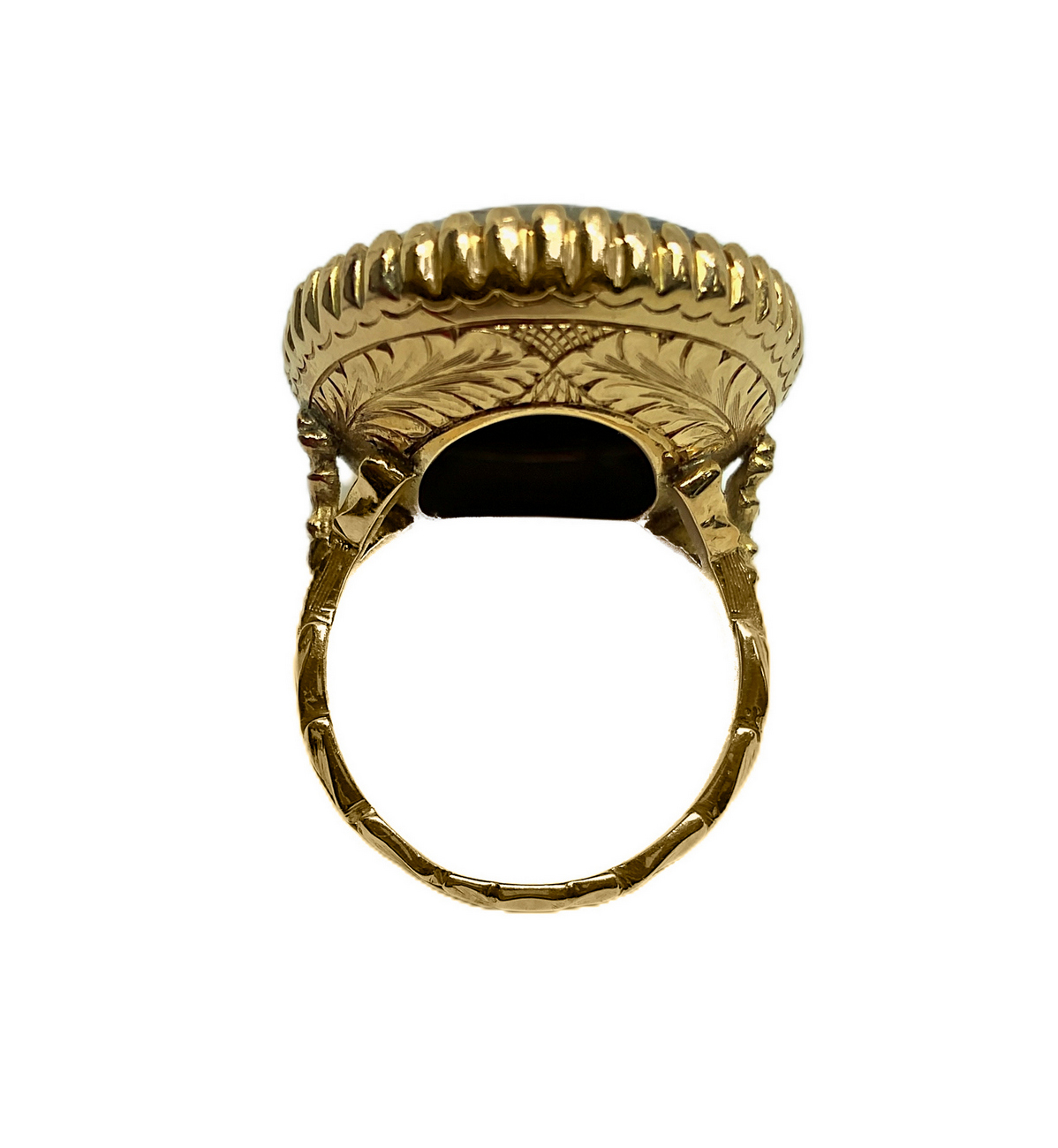 Lotto 120 | Anello in oro con ovale in agata. Cm 2,65