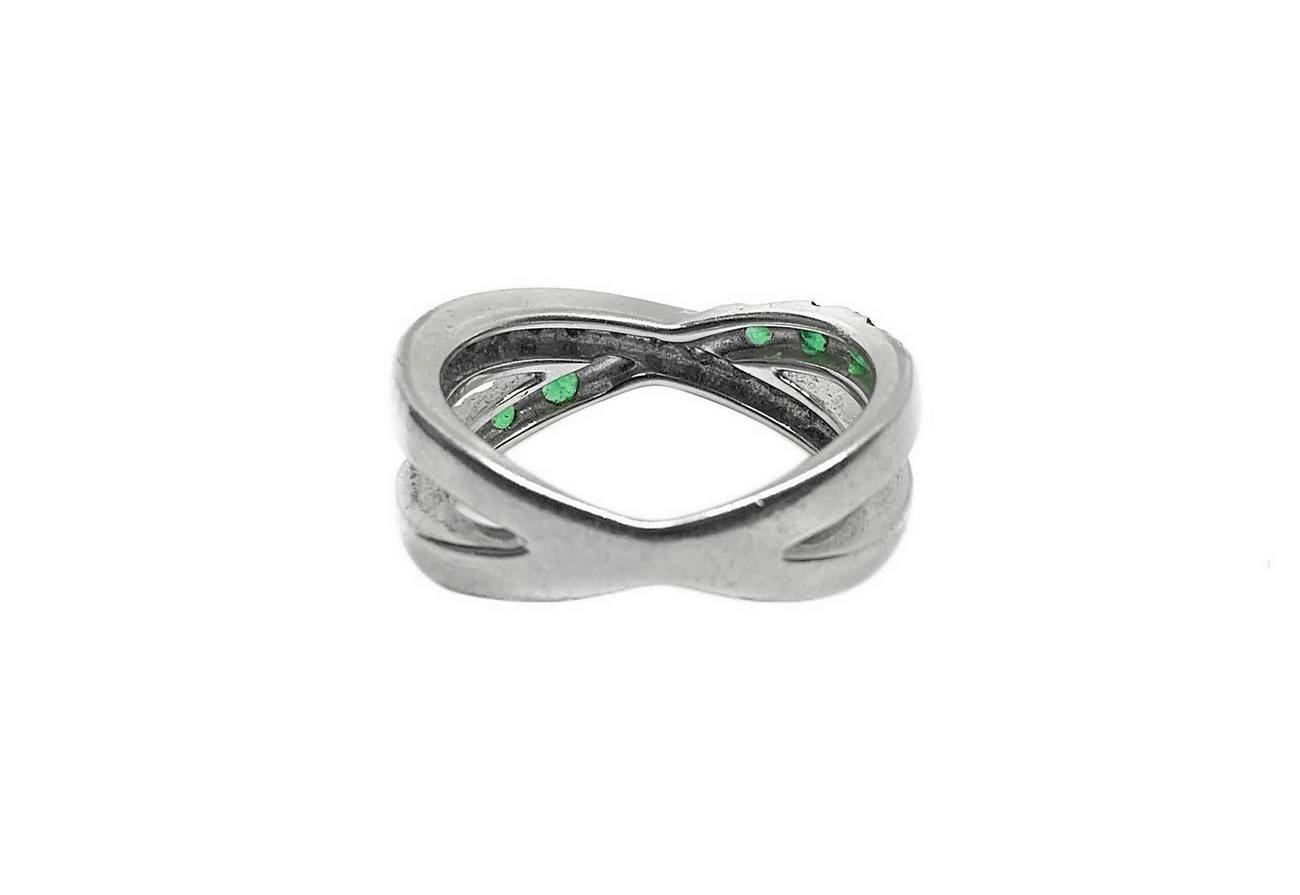 Anello a doppio giro a incrociare di cui uno con smeraldi e uno brillanti. Gr 7.6