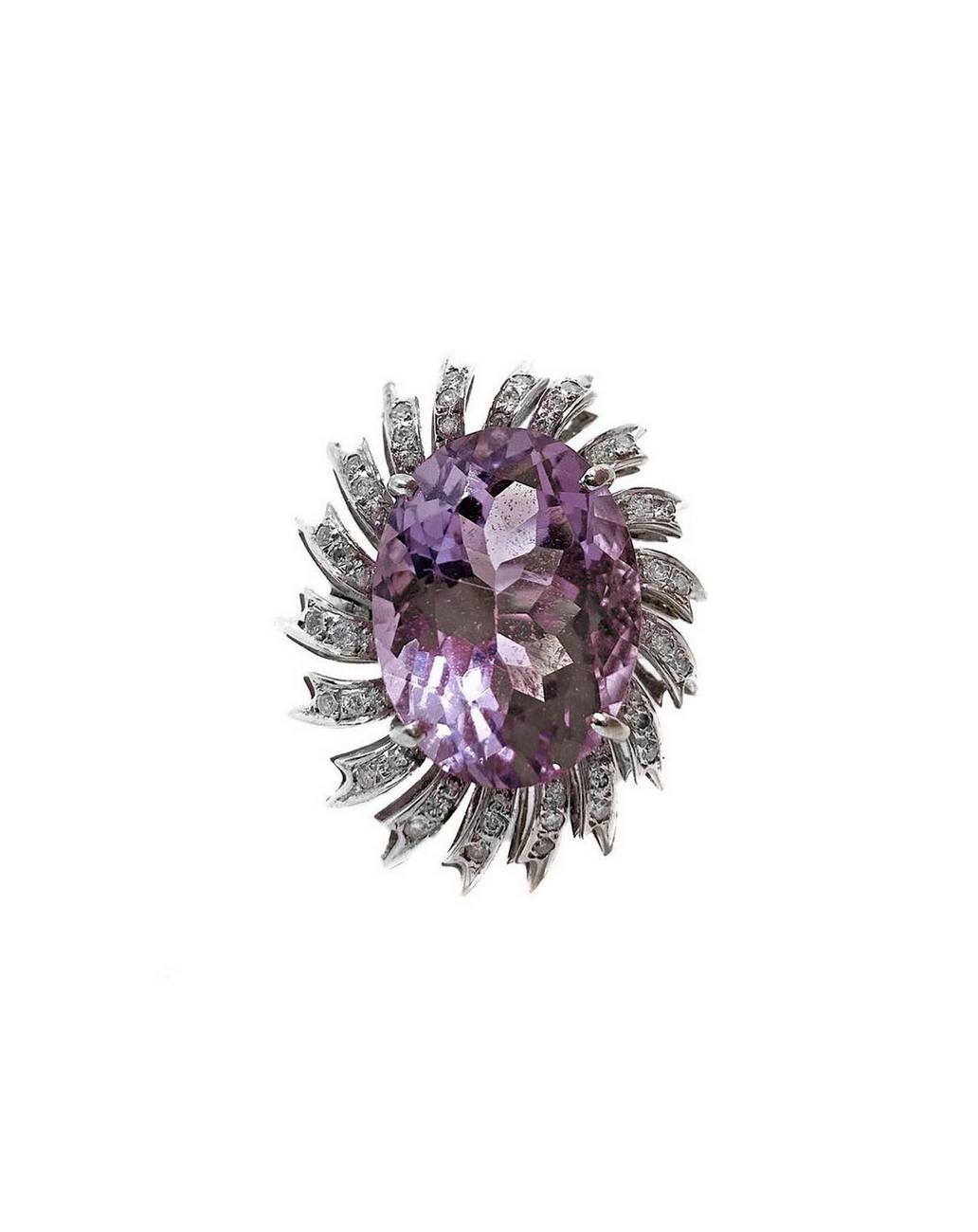 Lotto 160 | anello in oro bianco con pietra centrale in ametista e diamanti. Gr 12,7