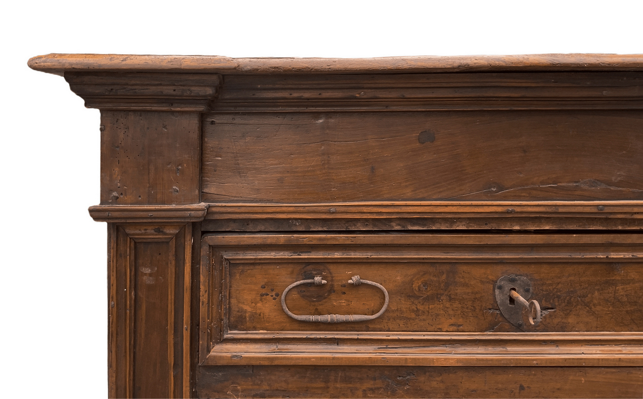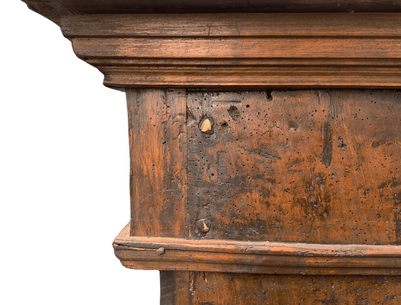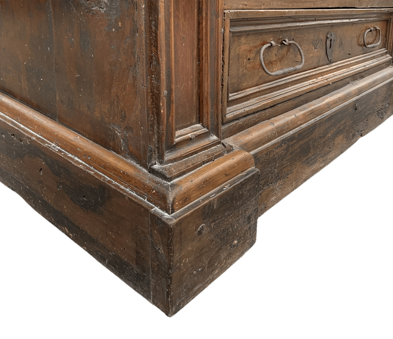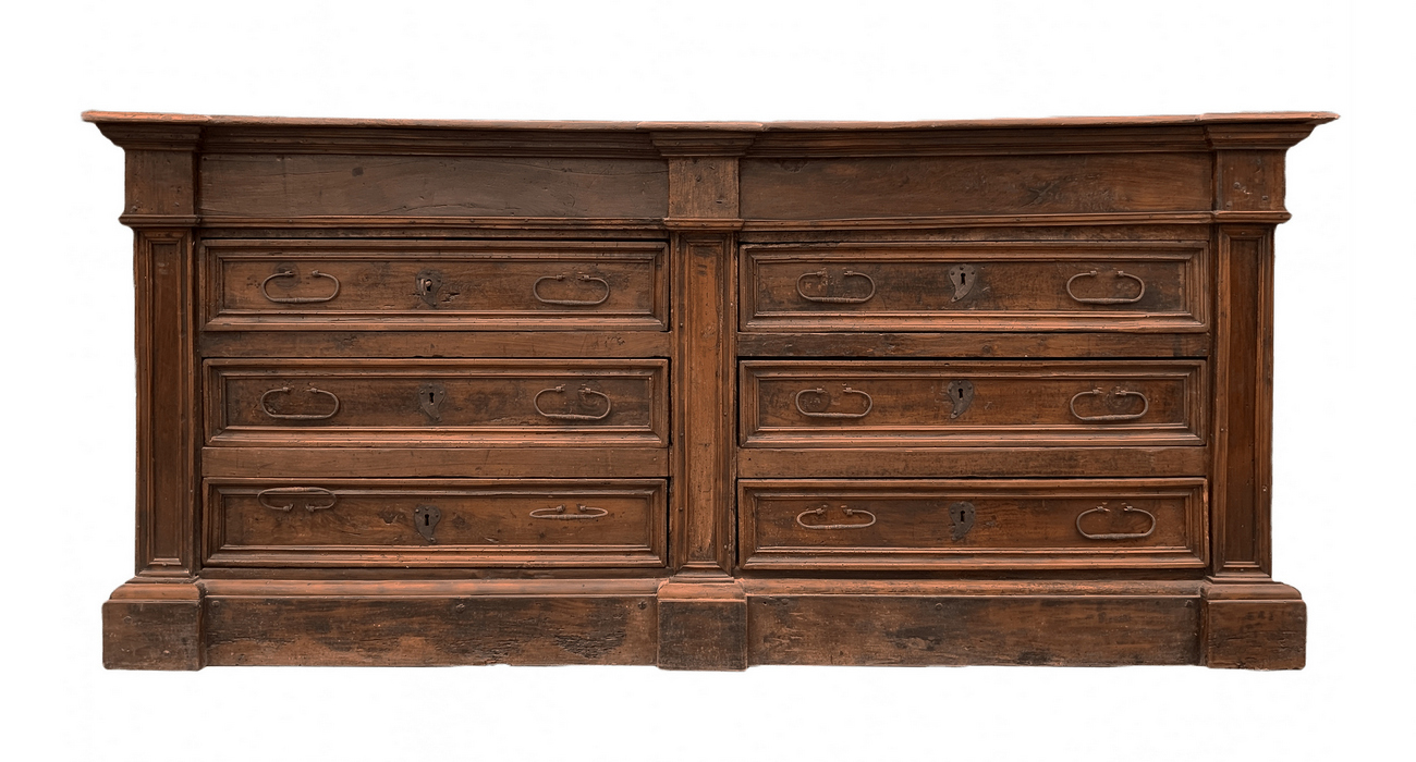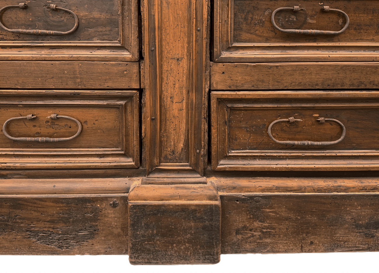 Mobile da sacrestia in legno di noce, interni in castagno, del secolo XVII, Sicilia. Maniglie in ferro. 265cm x 90cm x H116 cm