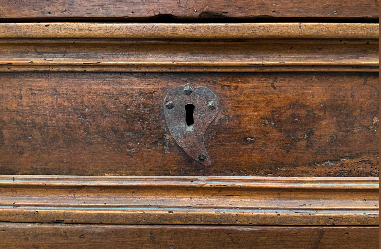 Mobile da sacrestia in legno di noce, interni in castagno, del secolo XVII, Sicilia. Maniglie in ferro. 265cm x 90cm