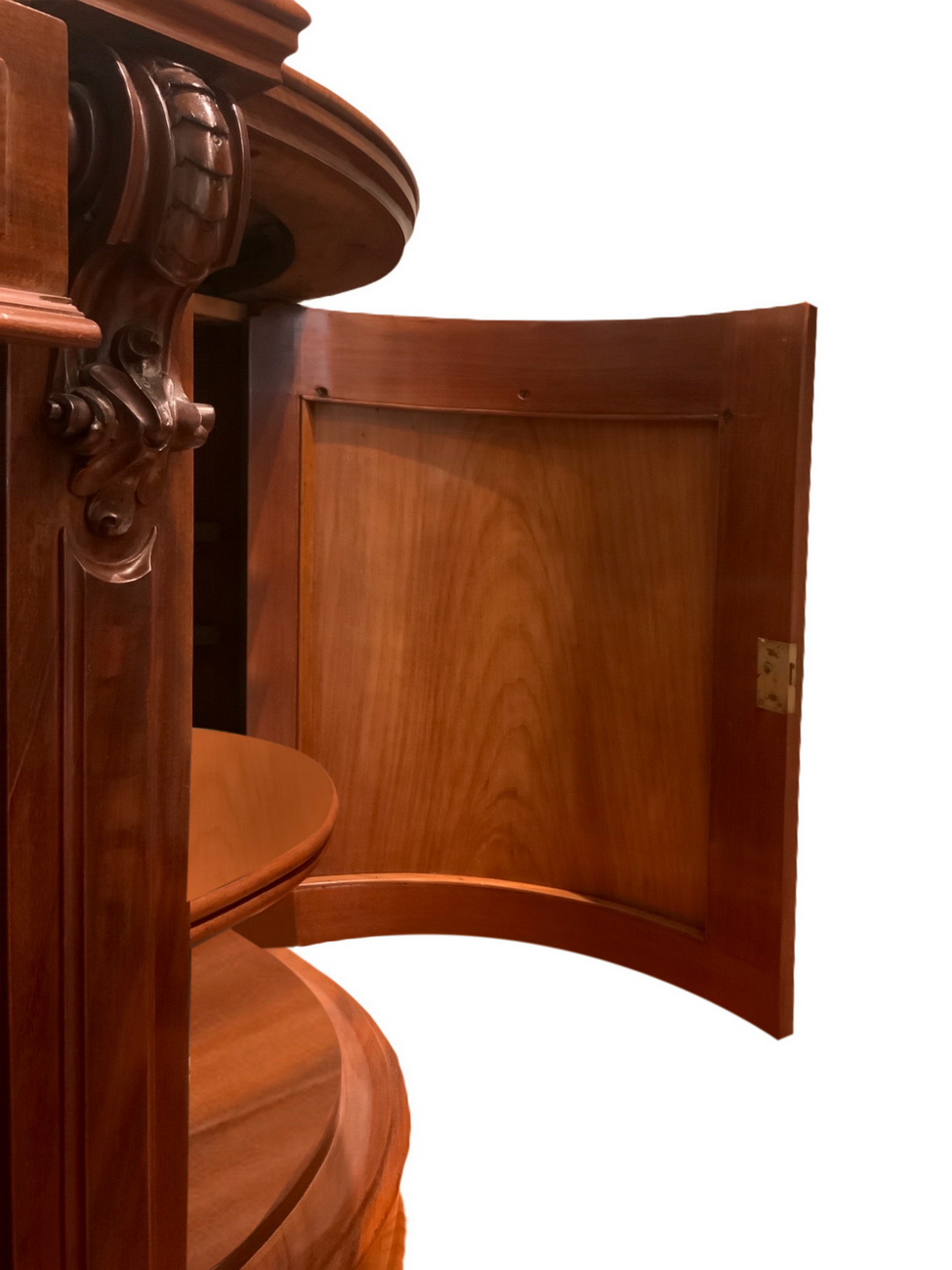 Credenza bassa in legno di mogano con interni foderati, cassetto centrale superiore più due sportelli angolari e due cen