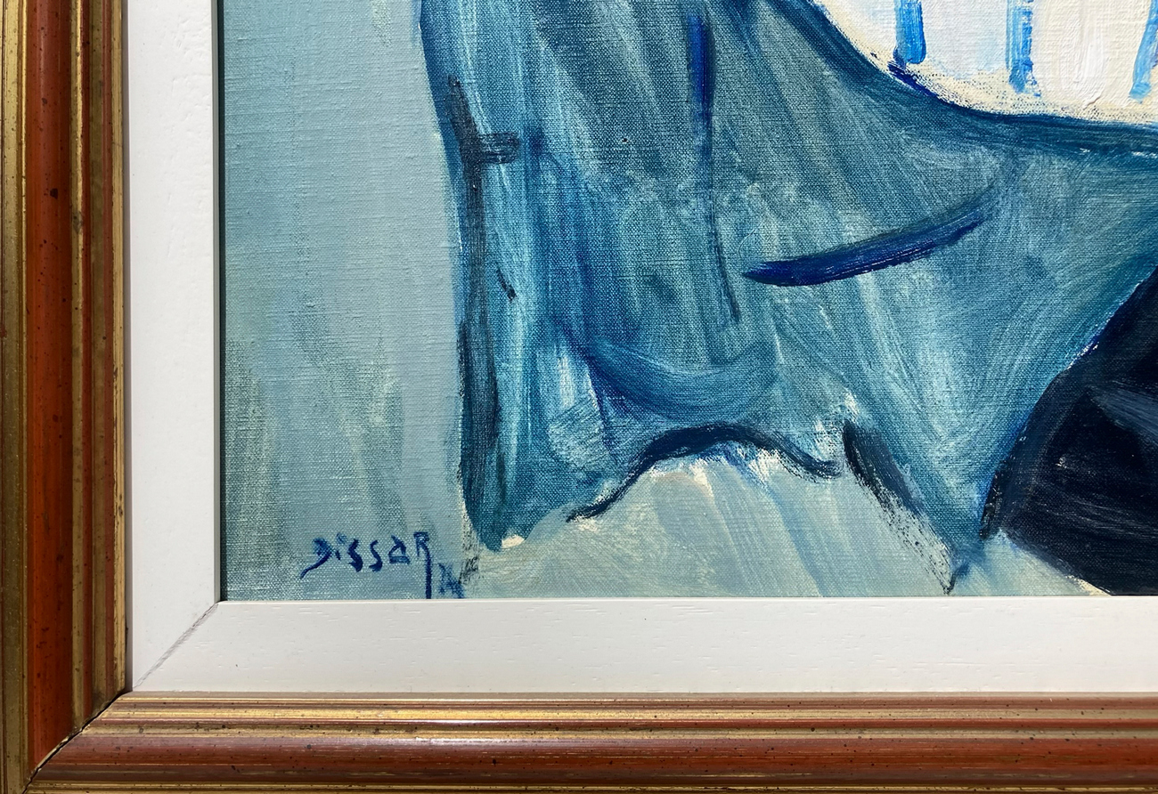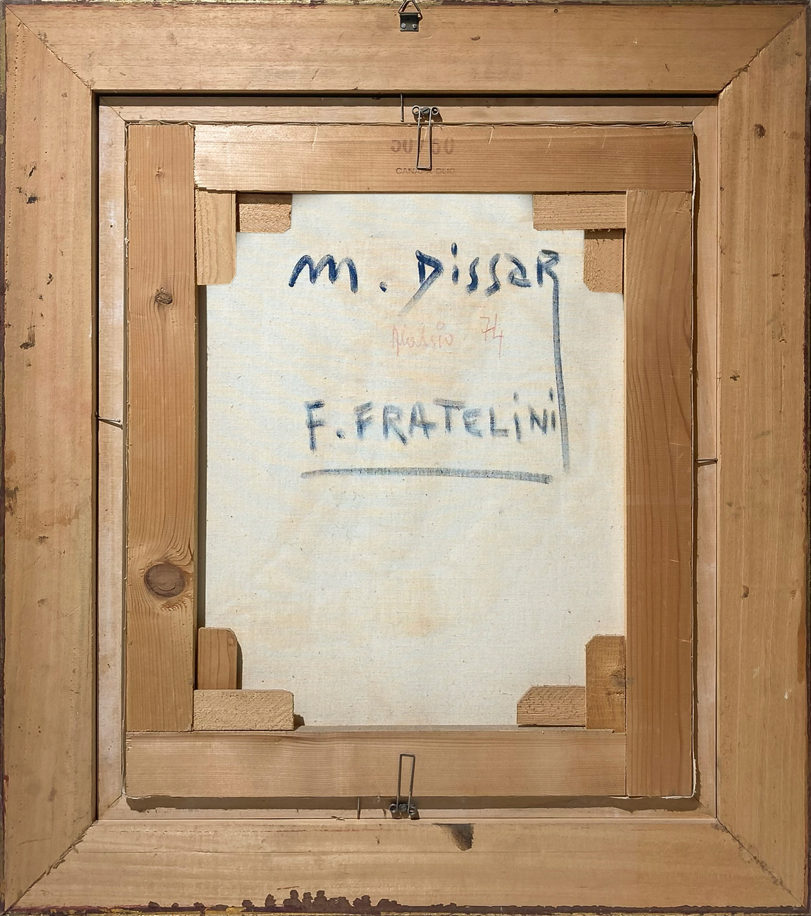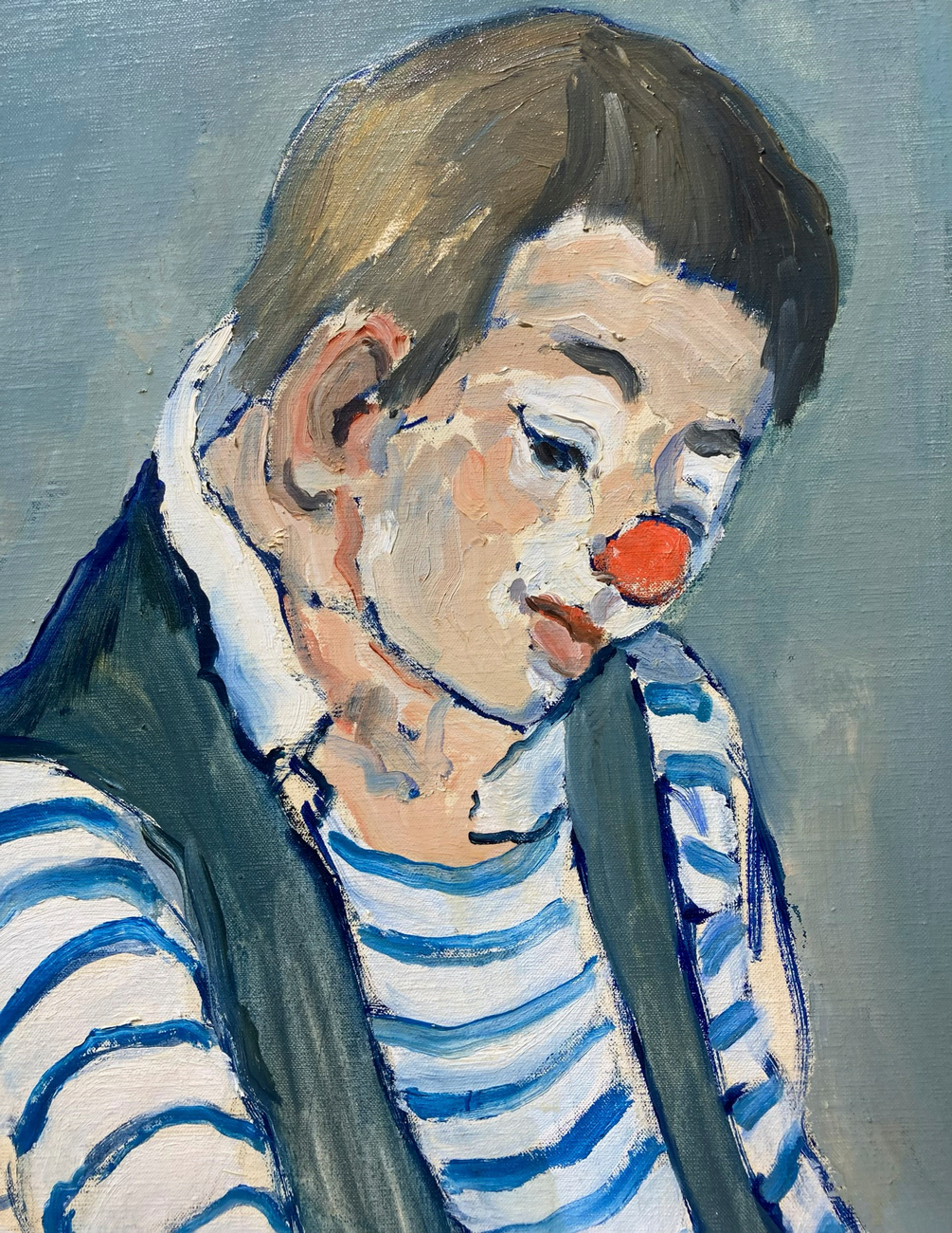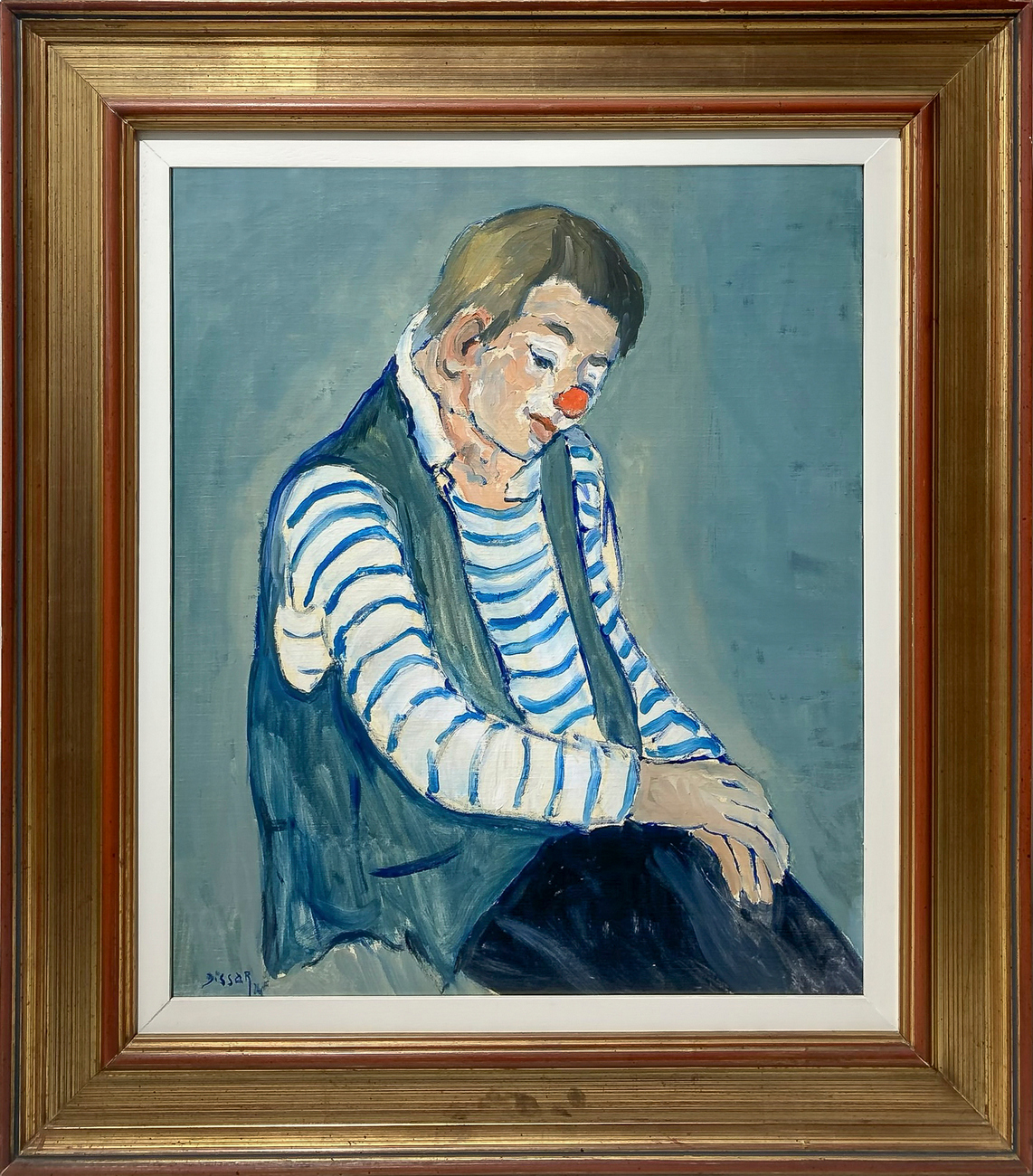 Max Dissar (1908-1993), dipinto ad olio su tela raffigurante Clown F. Fratellini, firmato Max Dissar. Cm 60x50, in corni