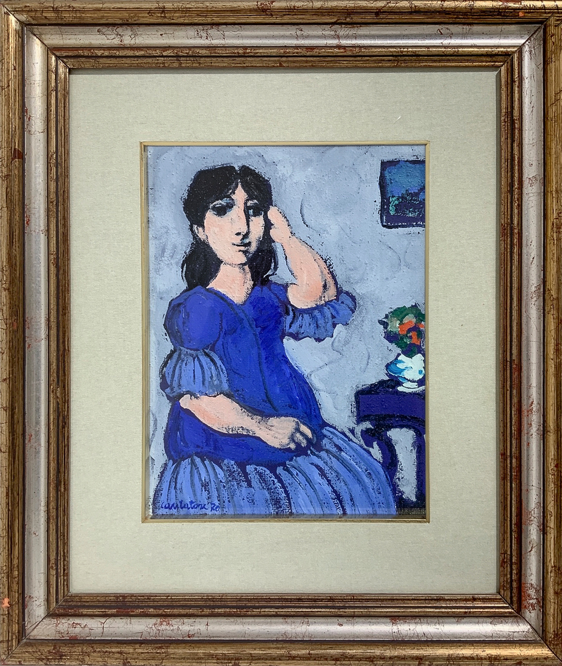 Domenico Cantatore (Ruvo di Puglia, 16 marzo 1906 – Parigi, 22 maggio 1998), Dipinto ad olio su tela raffigurante donna, firmato e datato in basso a sinistra Cantatore ’70. Sulla tela e sul telaio timbro Russo&Russo La Barcaccia Roma Cm 40x30, in cornice cm 79x60