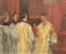 Guglielmo Janni (Roma, 19 novembre 1892 - Roma, 23 gennaio 1958), dipinto ad olio su cartone pressato raffigurante sacerdoti in preparazione liturgica. Firmato in basso a destra Guglielmo Janni ( - ) e datato sul retro 1937. Cm 33x59,5, in cornice cm 80x53