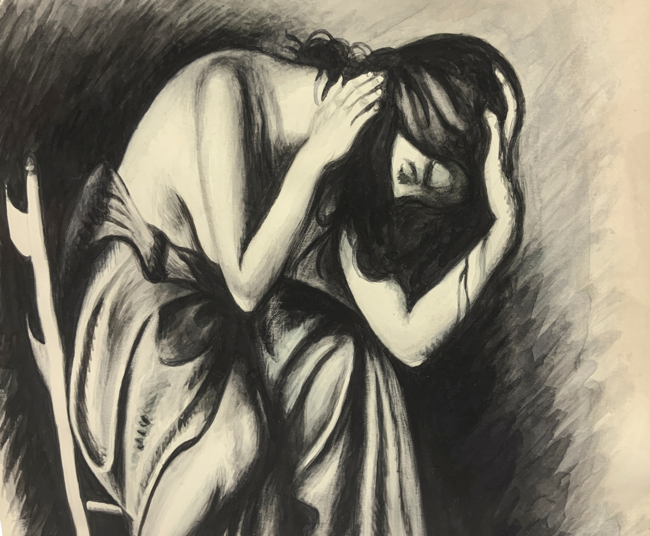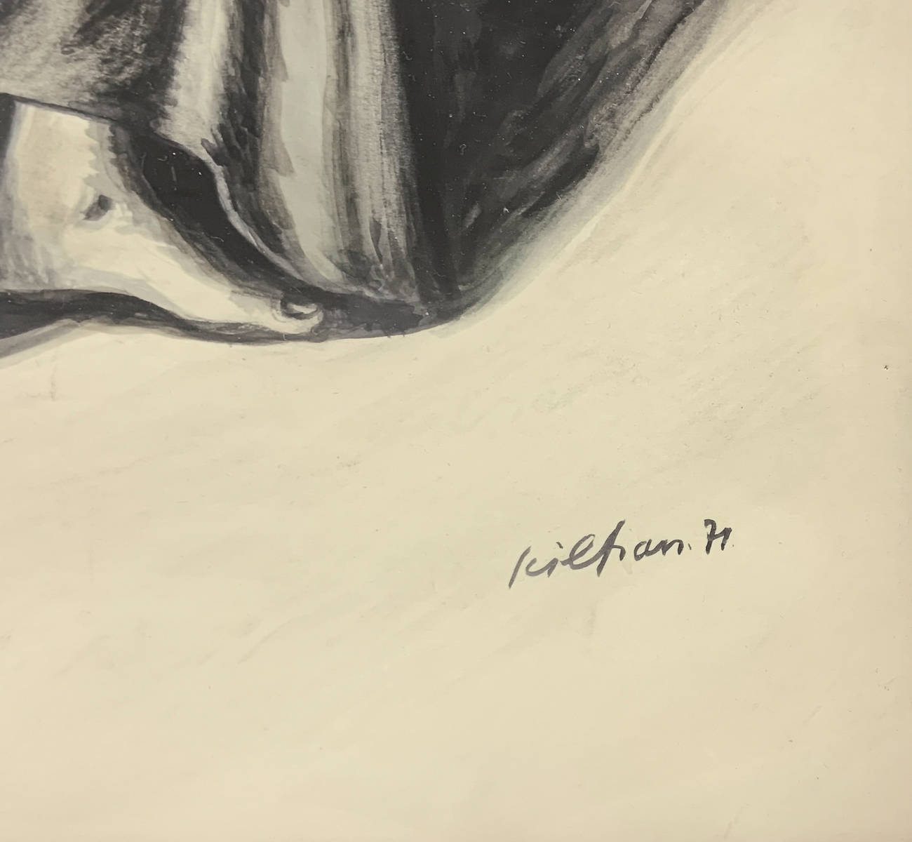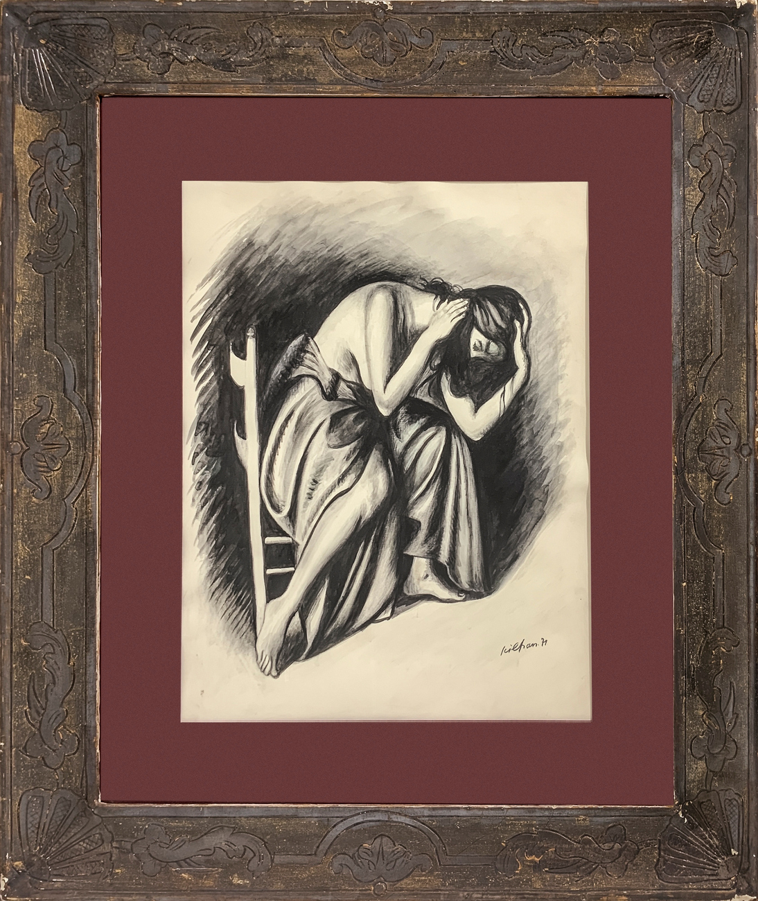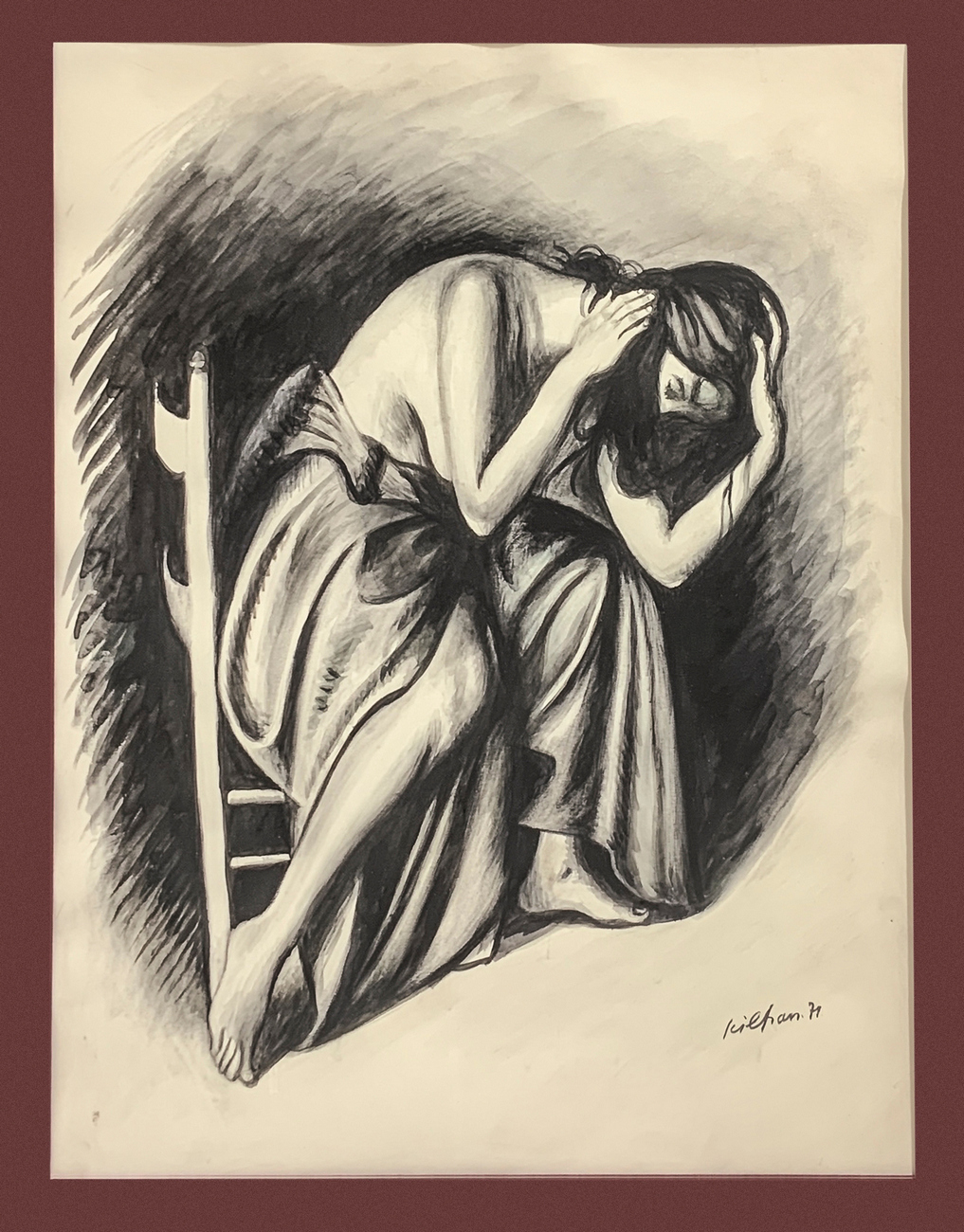 Disegno a china raffigurante nudo di donna con veste, firmato in basso a destra Sciltian 71. Grigorij Ivanovic Siltjan (Rostov 1900- Roma 1985). Cm 44x34, in cornice cm 72x62