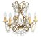Lampadario a 6 luci in metallo con brindoli e piattini in vetro, inizi XX secolo. H cm 50, diametro cm 60