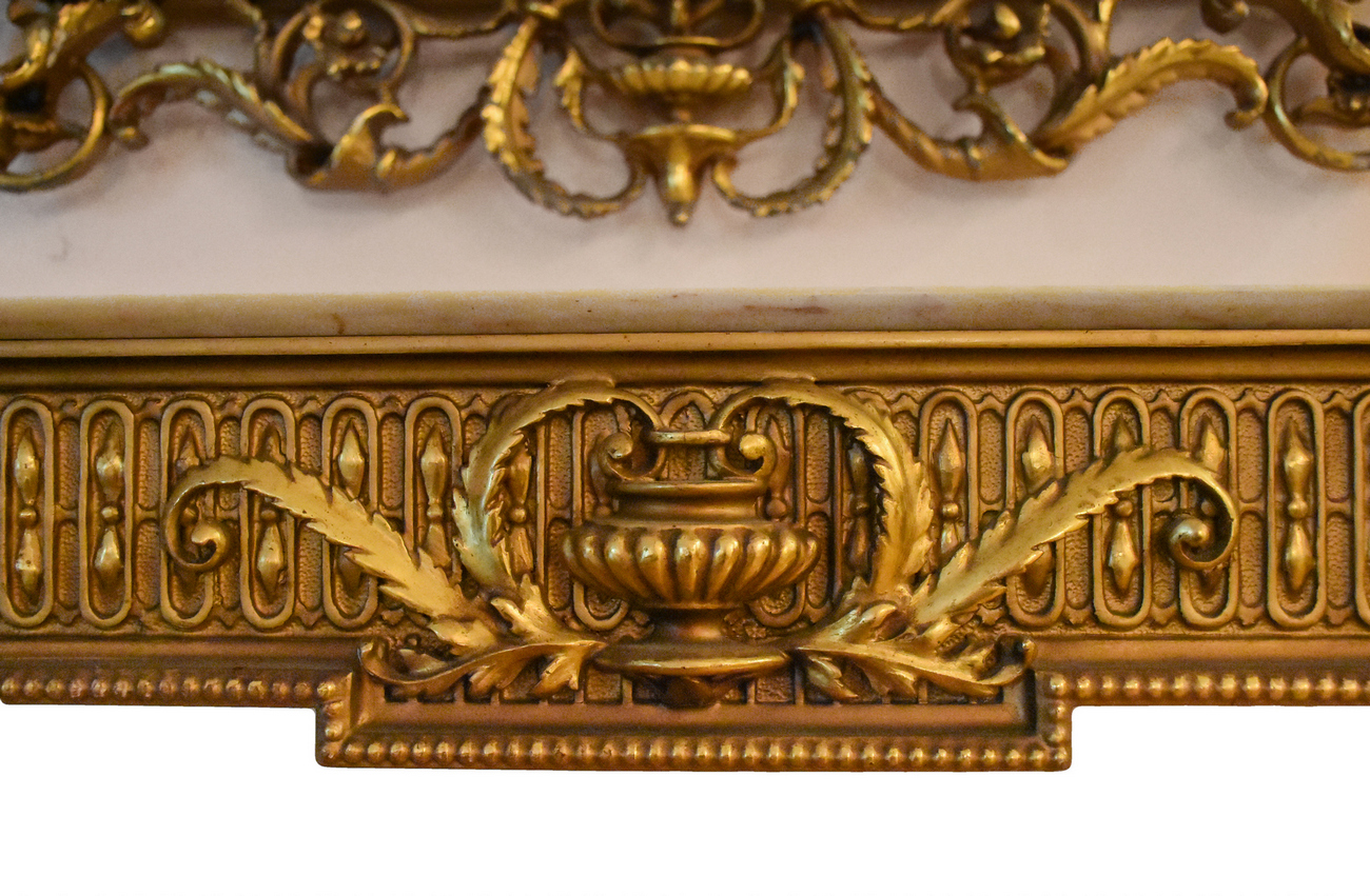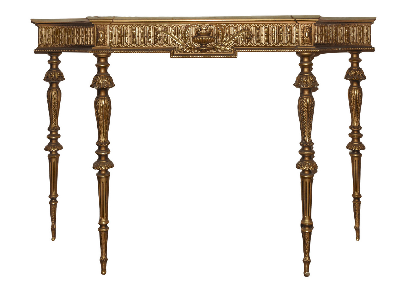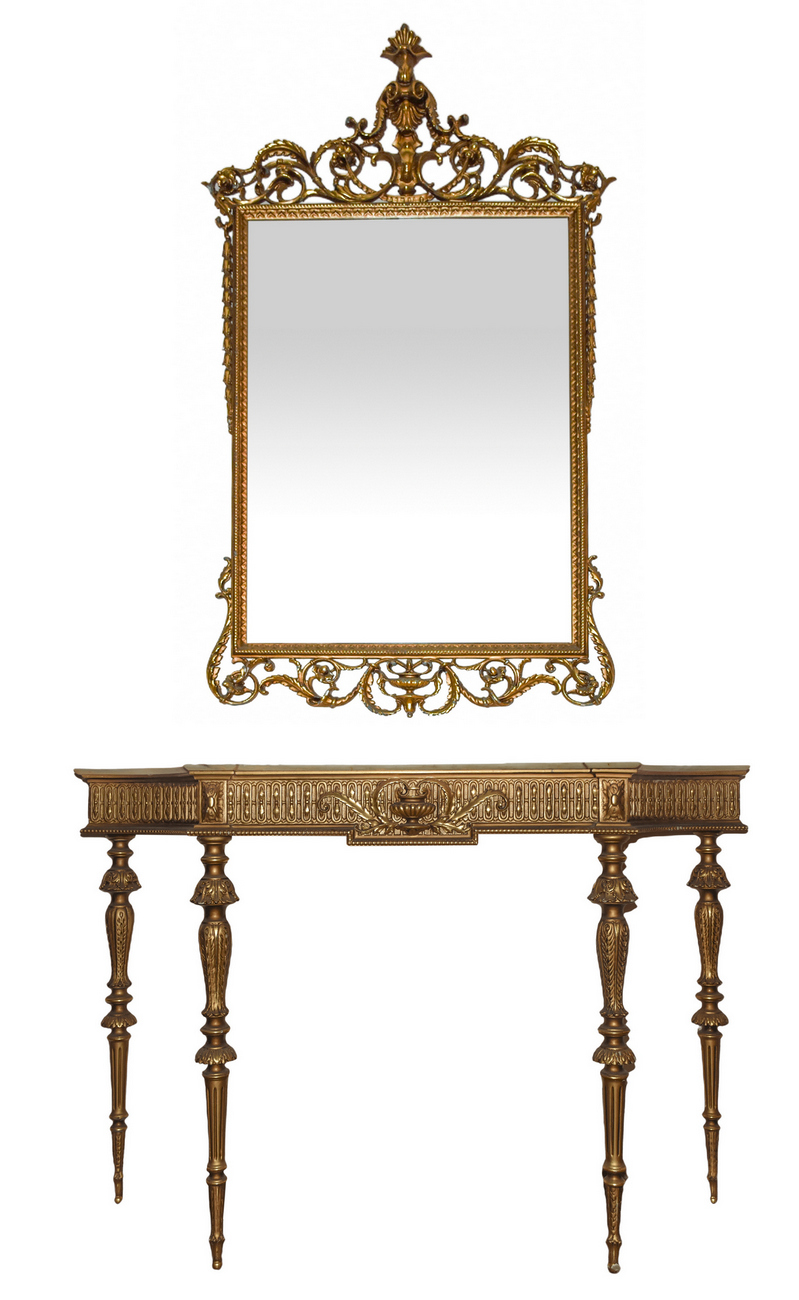 Consolle con specchiera dorata, inizi XX secolo. H cm 93x138x42 Specchiera H cm 165x90x prof. max cm 10