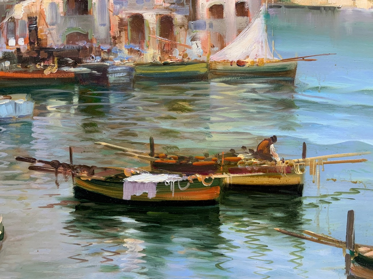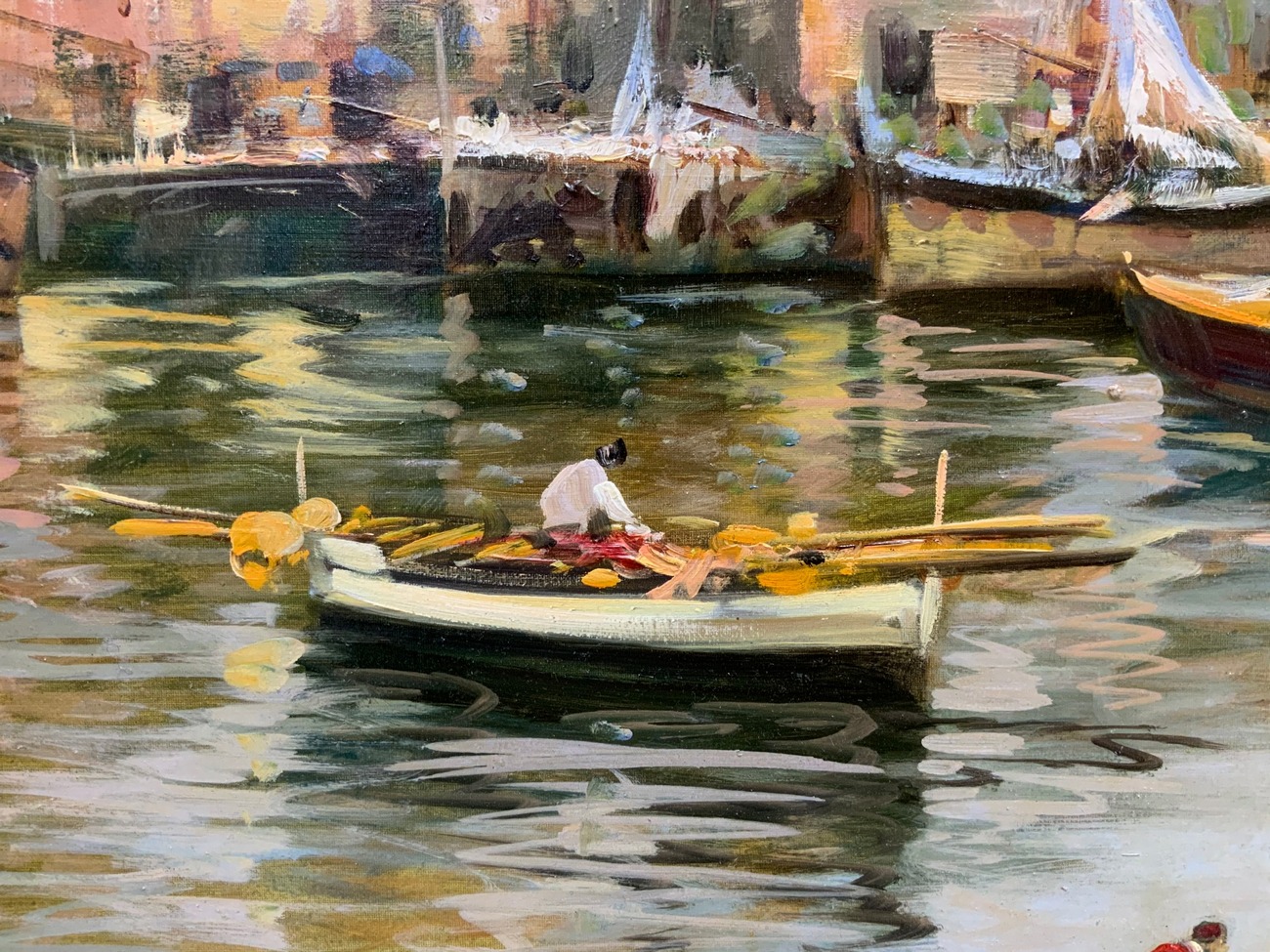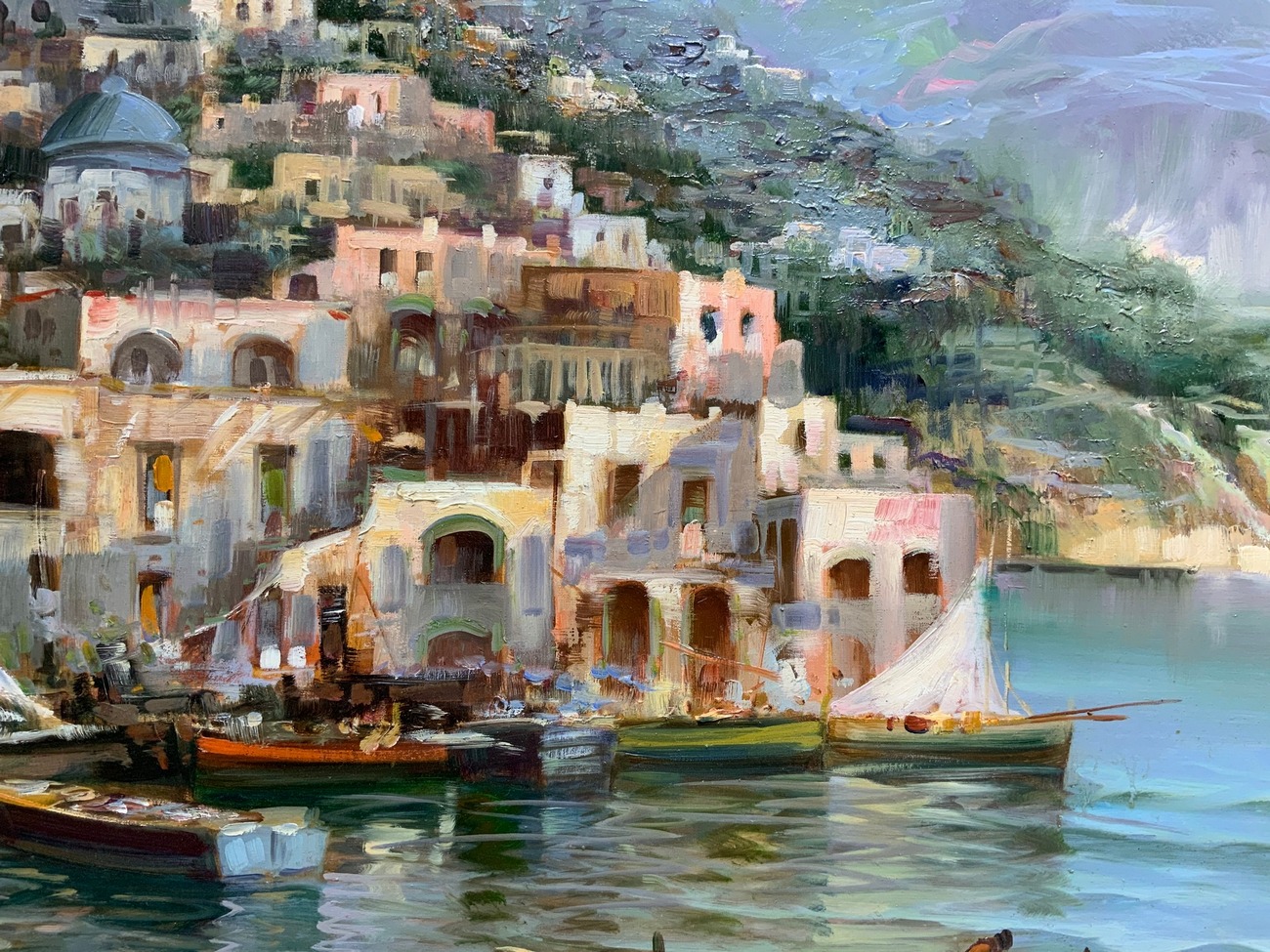 Dipinto ad olio su tela “Procida” firmato Carlo Morandi. Cm 100x100, in cornice cm 127x127
