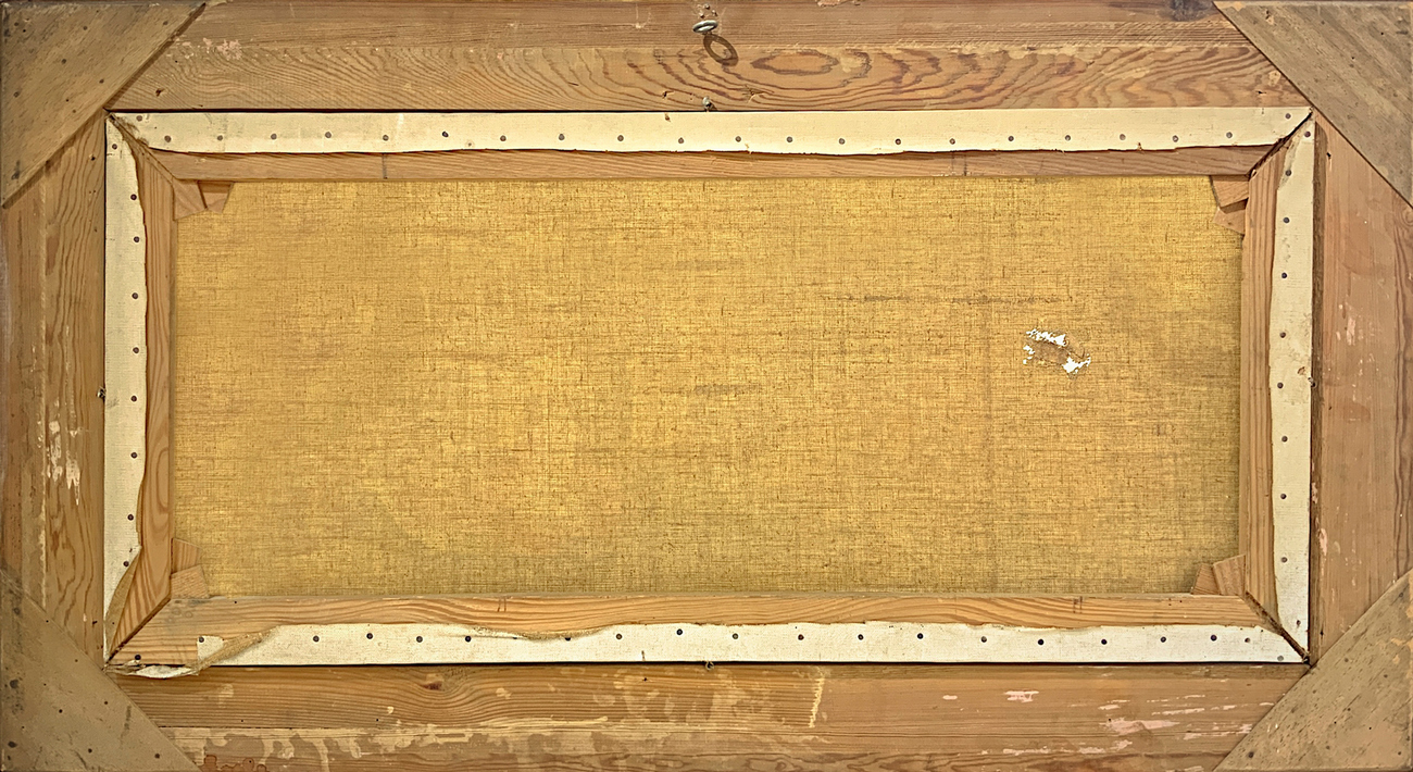 Dipinto ad olio su tela raffigurante natura morta di frutta, inizi XX secolo. Firmato in basso a destra C. Schulze. Cm 40x90, in cornice cm 58x108