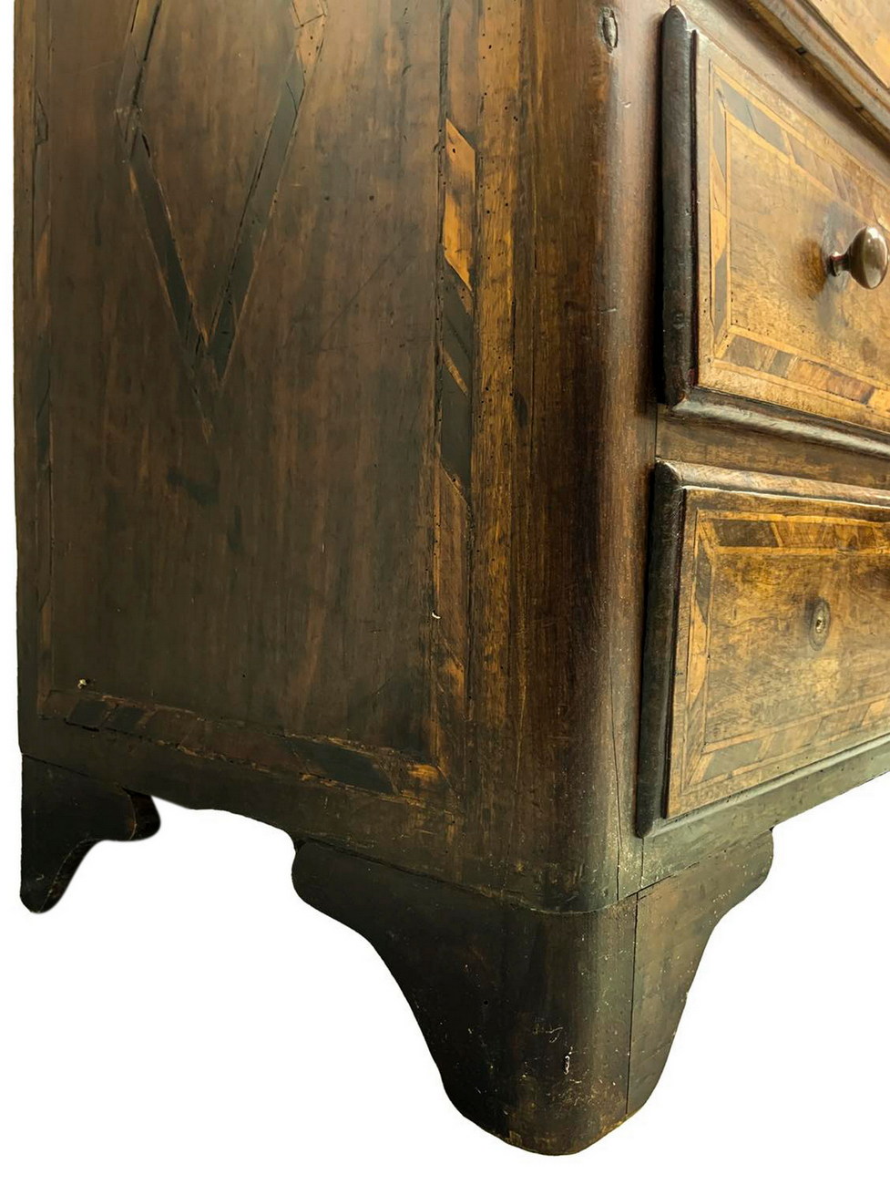 Chiffoniera in legno di palissandro con intarsi in metallo argentato, Sicilia, XIX secolo. Quattro cassetti al