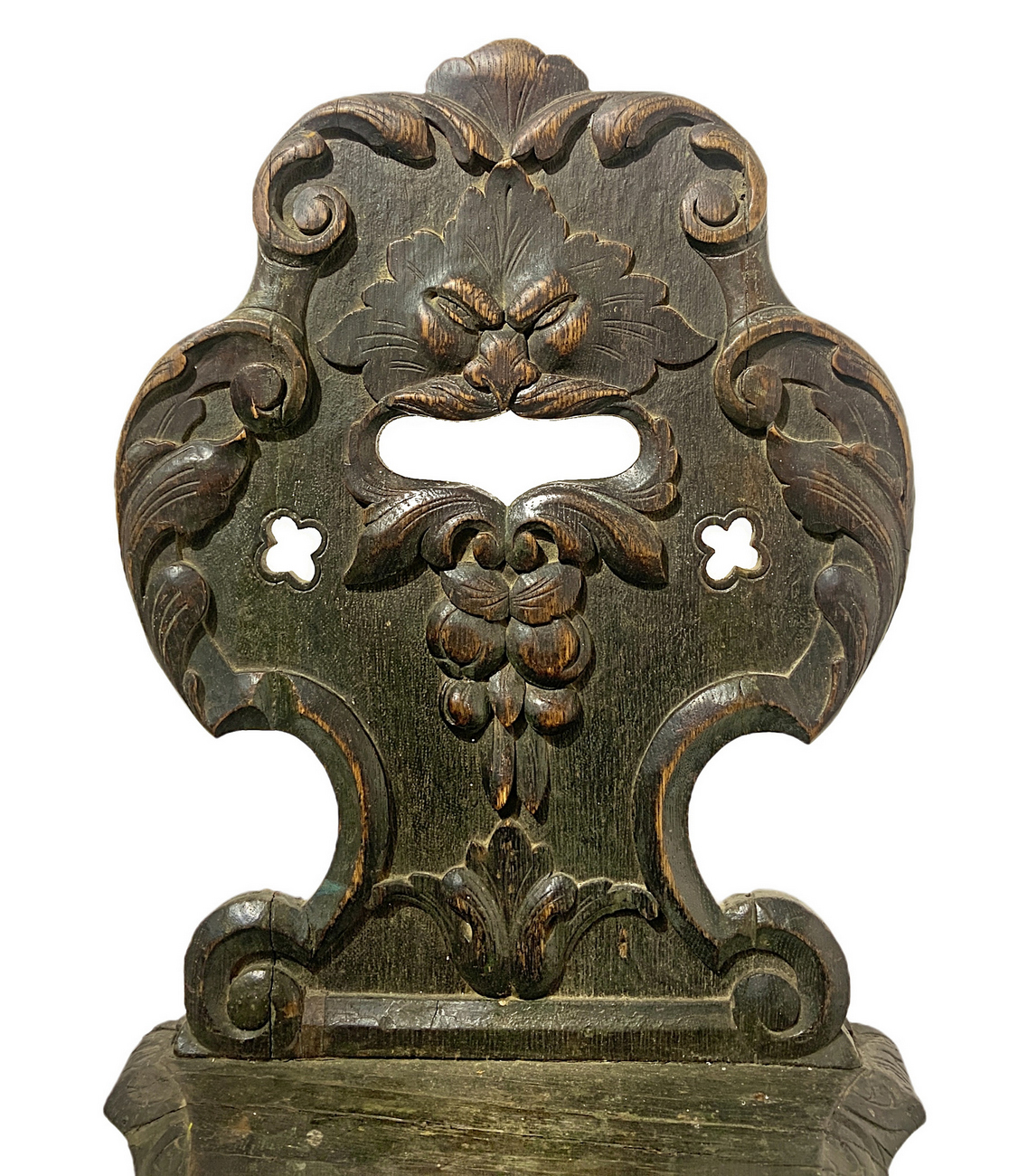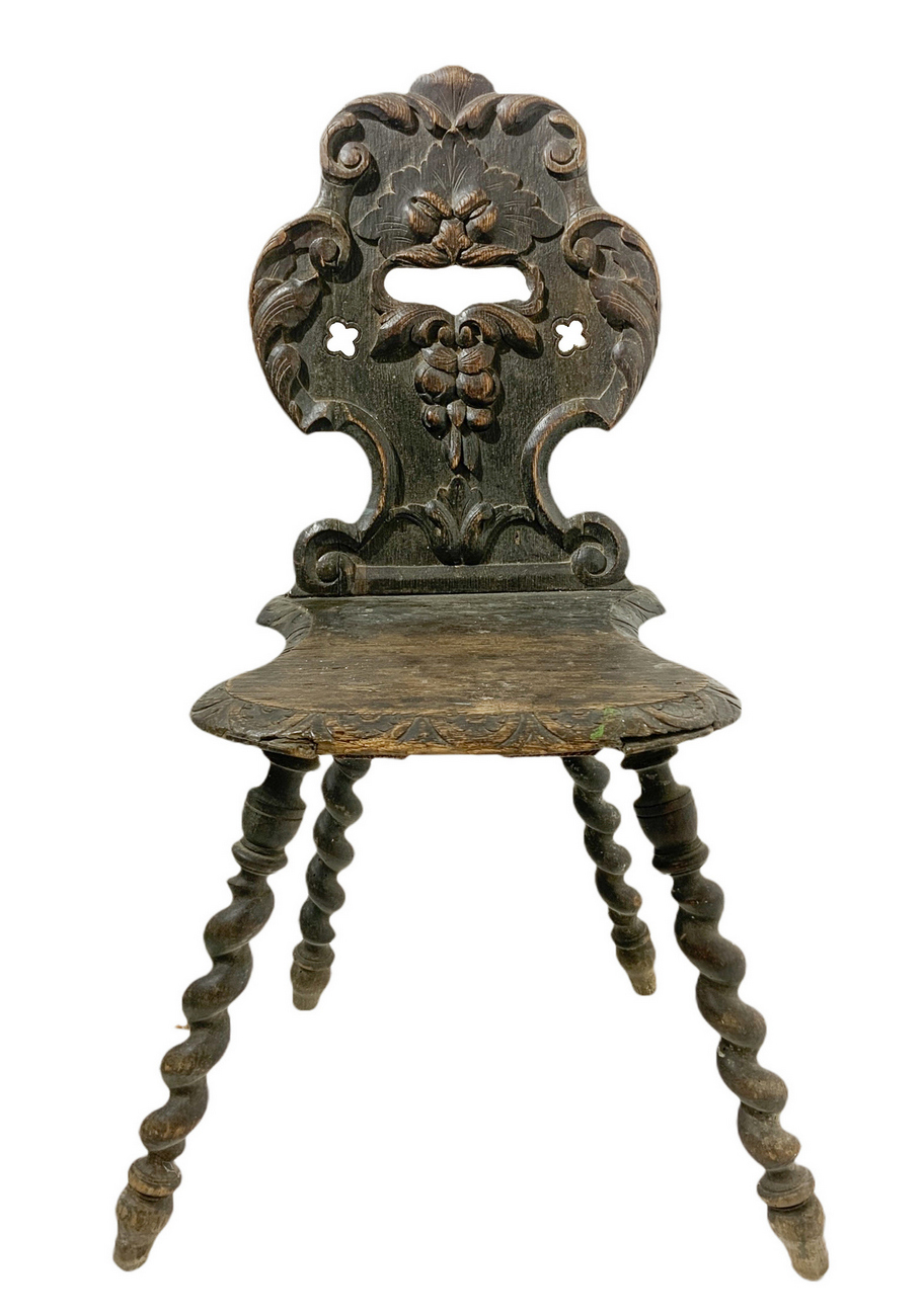 Sedia/sgabello ligneo intagliato, XIX secolo. H cm 95 x 42
