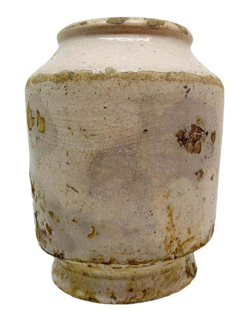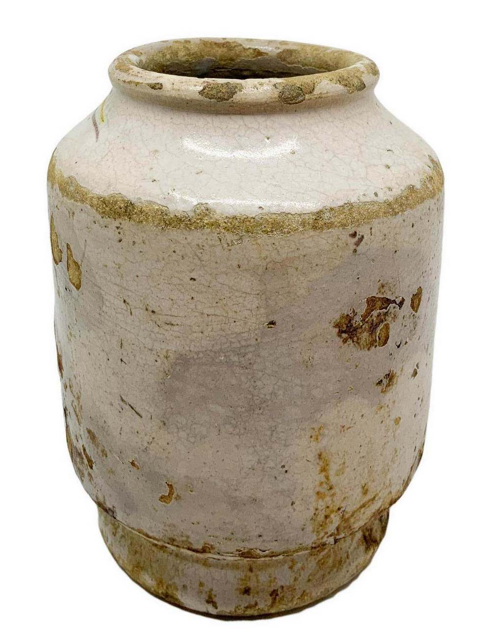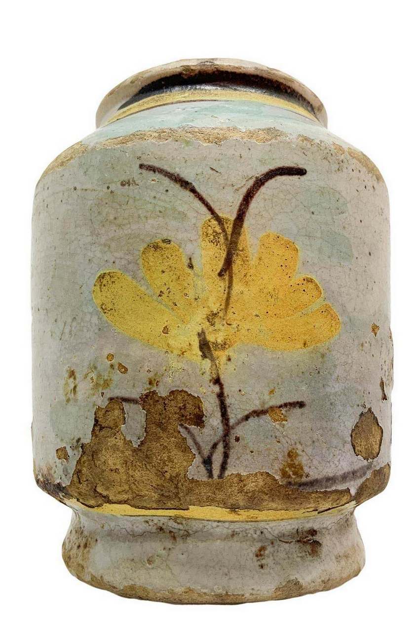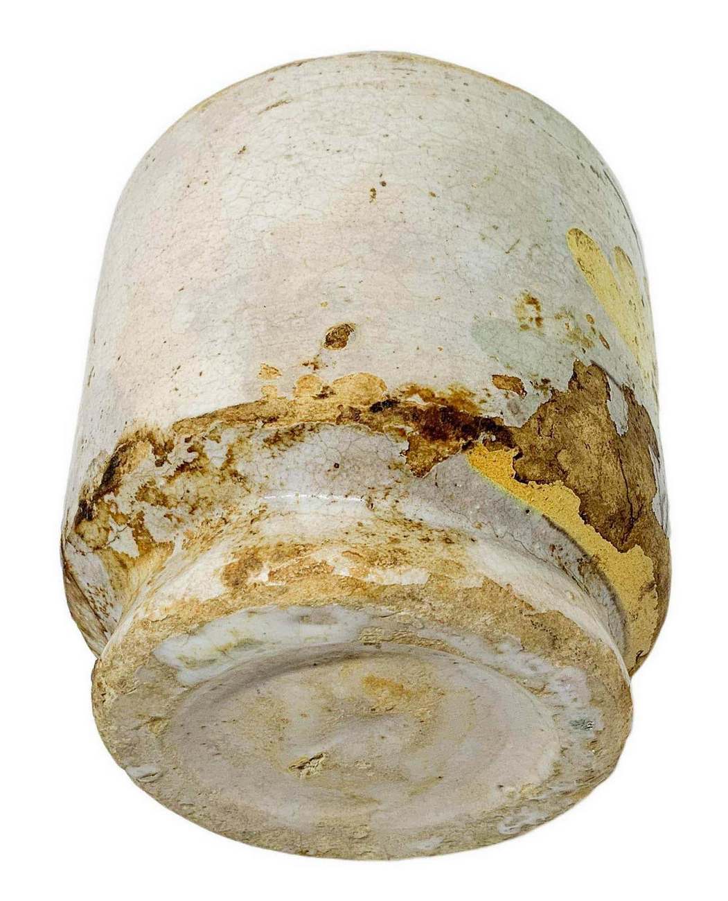 Cilindro in pasta bianca con decori floreali gialli sul fondo bianco, inizi XIX secolo. H cm 14.