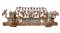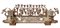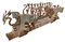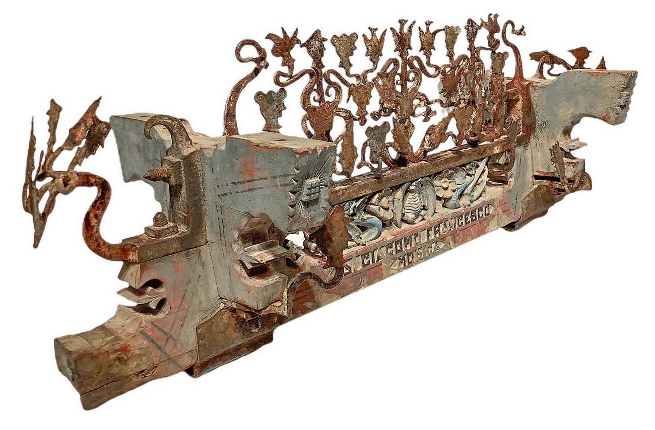 Frammento di carretto, fascia di fuso. In legno policromo scolpito a putti, mascheroni e ferro battuto alla forgia in stile barocco con teste di paladini con elmo e aquile, Autore Di Giacomo Francesco, Modica, Catania, Sicilia fine XIX secolo, inizi XX secolo. H Cm 40x100