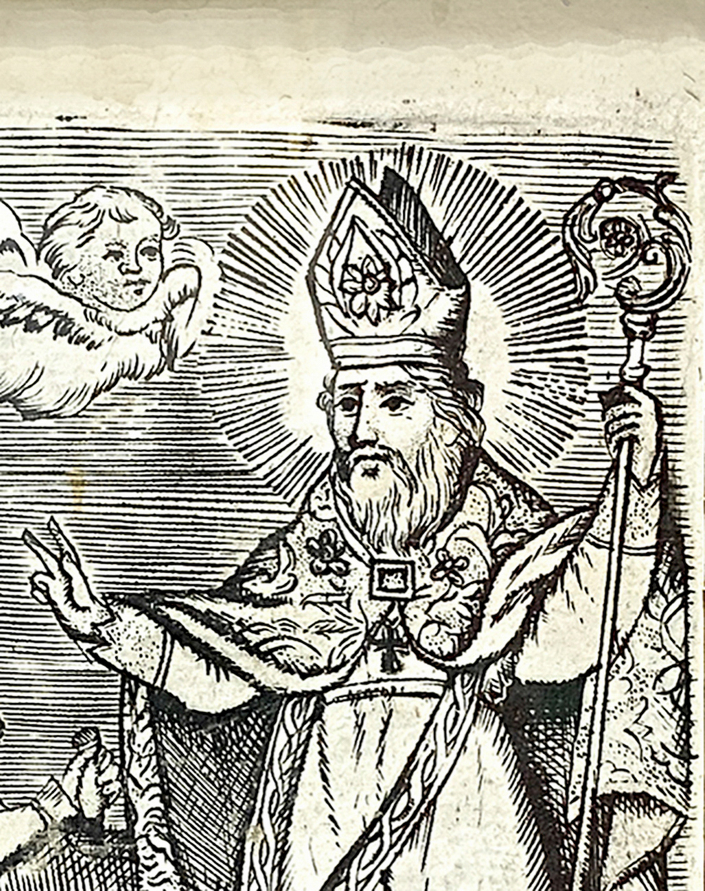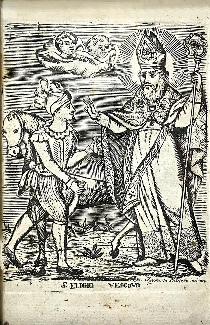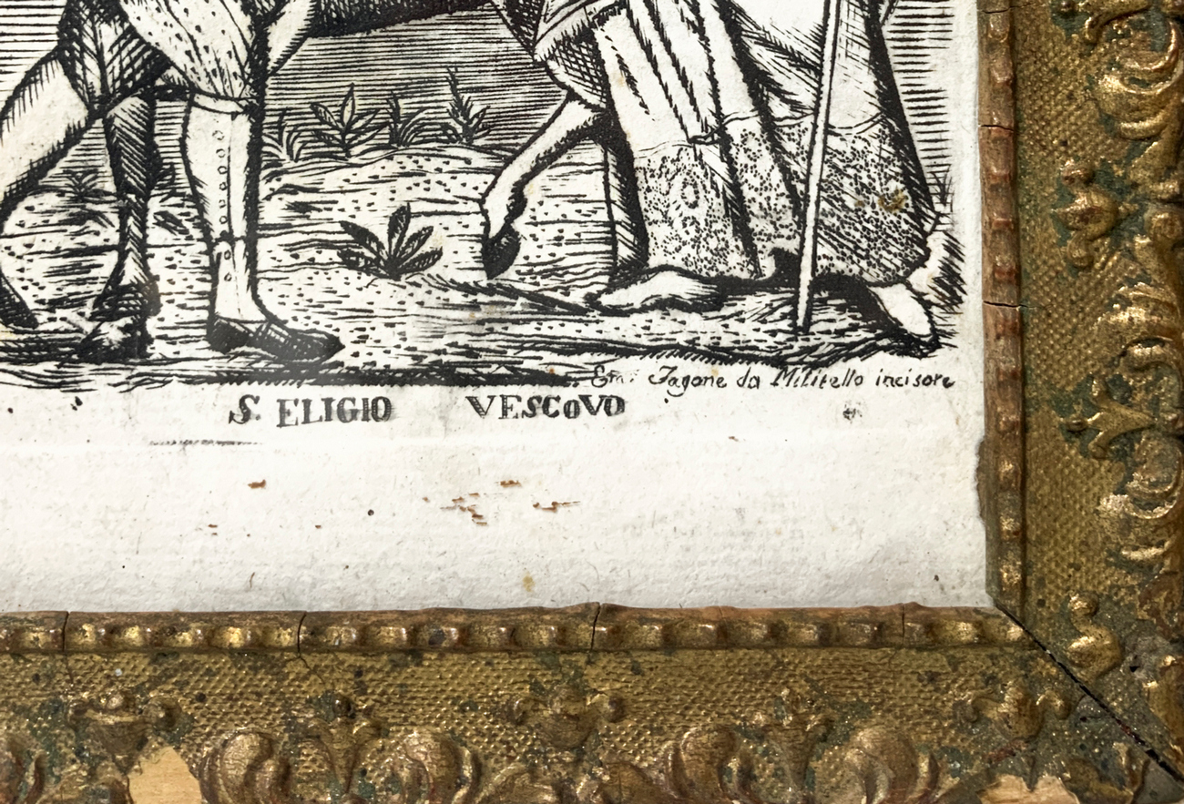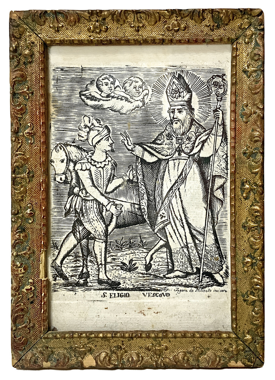 Incisione raffigurante S.Eligio Vescovo, Incisore Zagaria da Militello, XVIII secolo. Cm 17x11,5 (1)