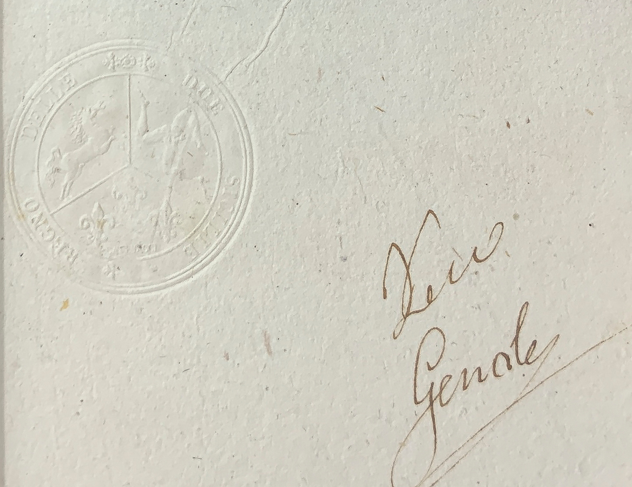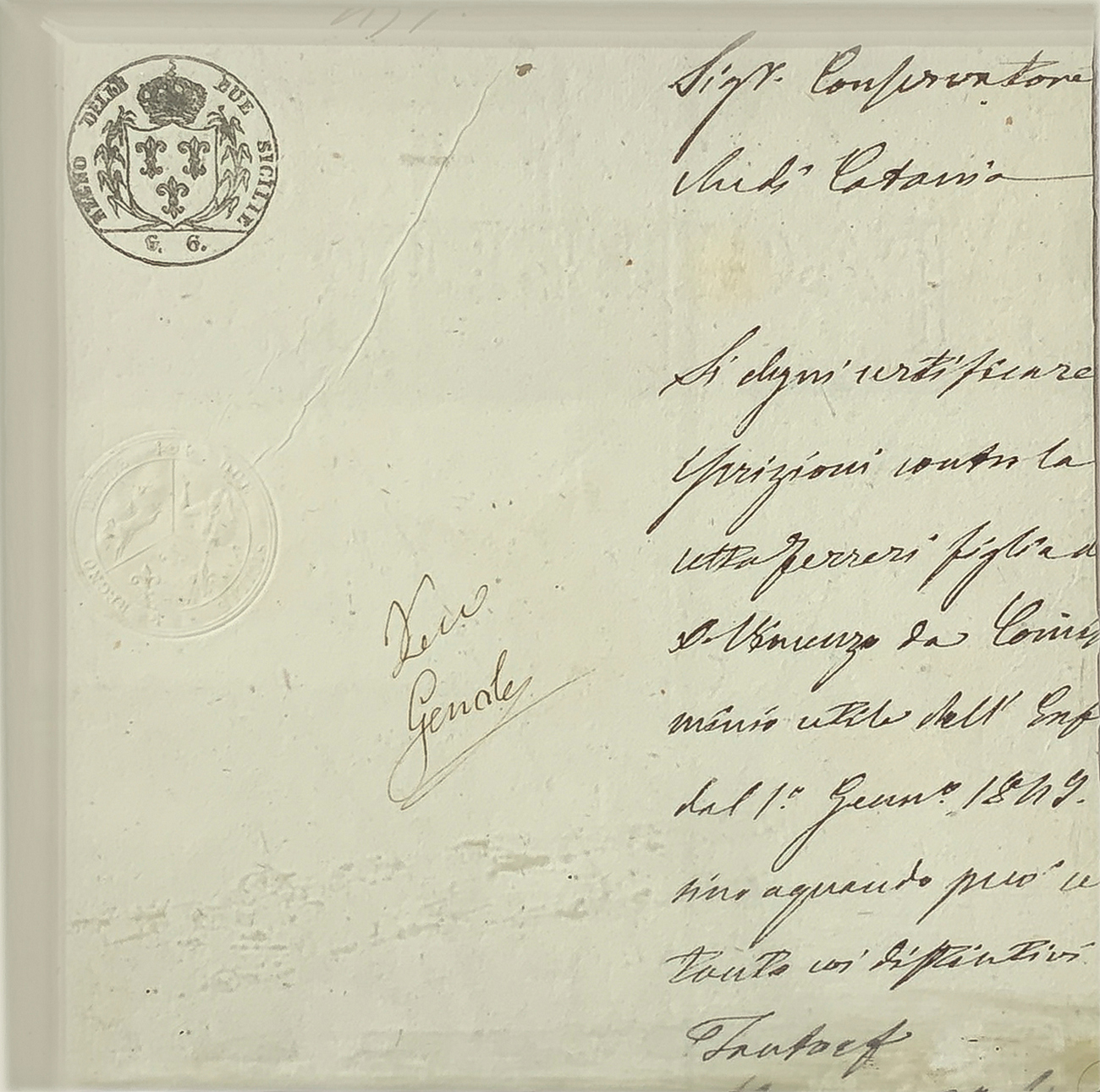 Frammento cartaceo con timbri a secco del Regno delle Due Sicilie e timbro ad inchiostro del Regno delle Due Sicilie, XV