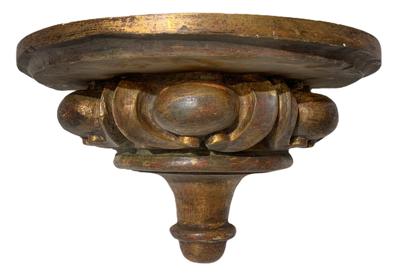 Mensola da muro in legno dorato, fine XIX secolo. H cm 20x34