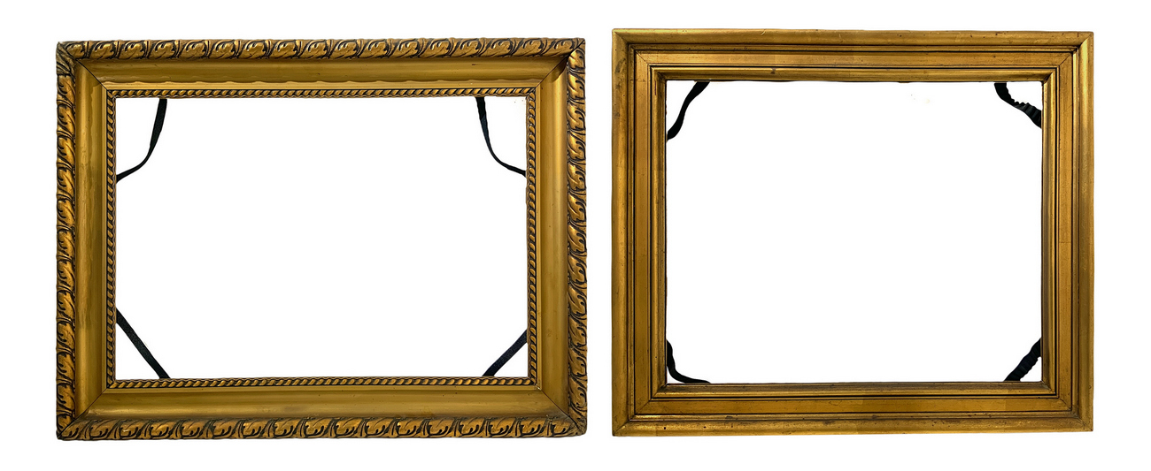 Coppia di cornici in legno dorato, XX secolo. 1) Misure interne m 55x80, misure esterne cm 73x98; 2) Misure interne cm 57x70, misure esterne cm 74x87