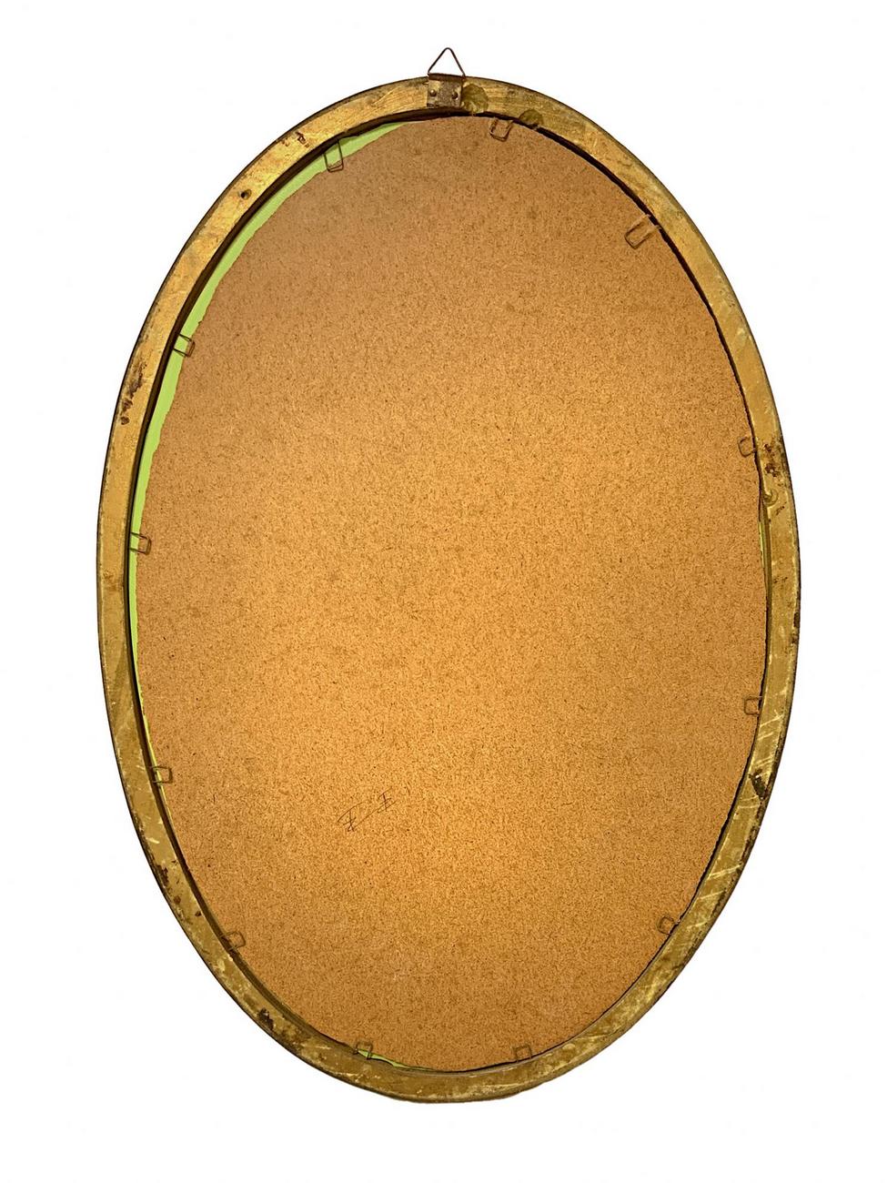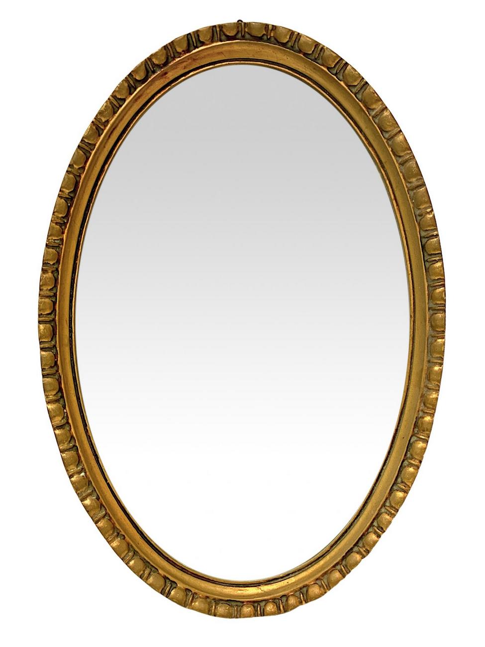 Piccola specchiera ovale con cornice in legno. Cm 51x35