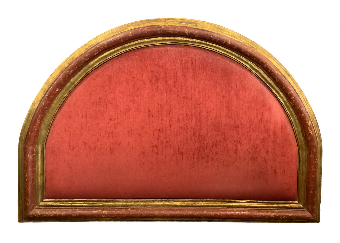 Lotto 266 | Testata da letto realizzata con cornice a mezza luna laccata nelle tinte del rosso screziato e dorata a foglia, XVI seco