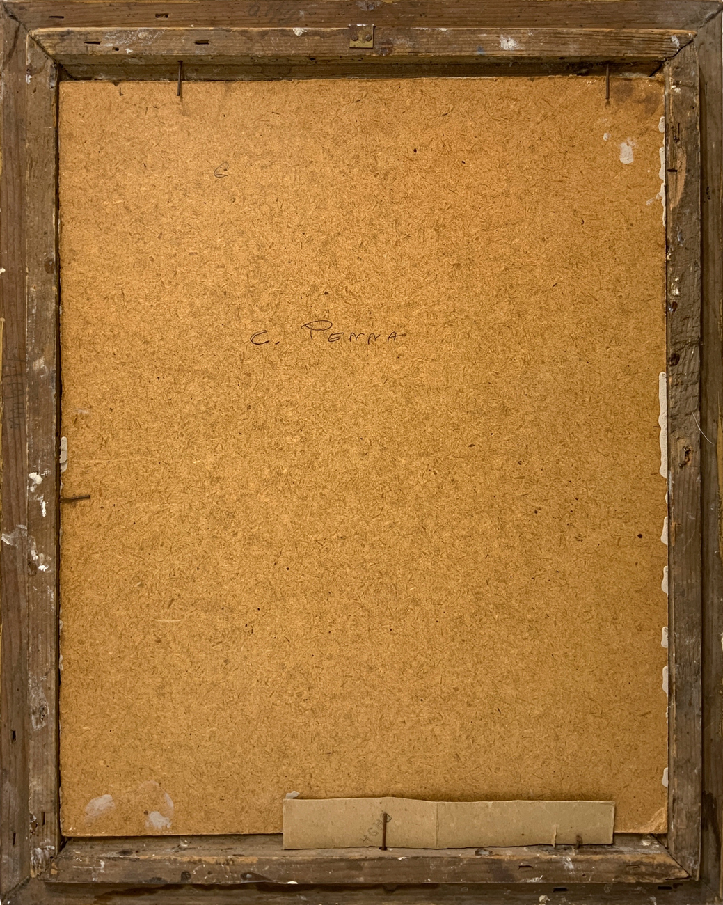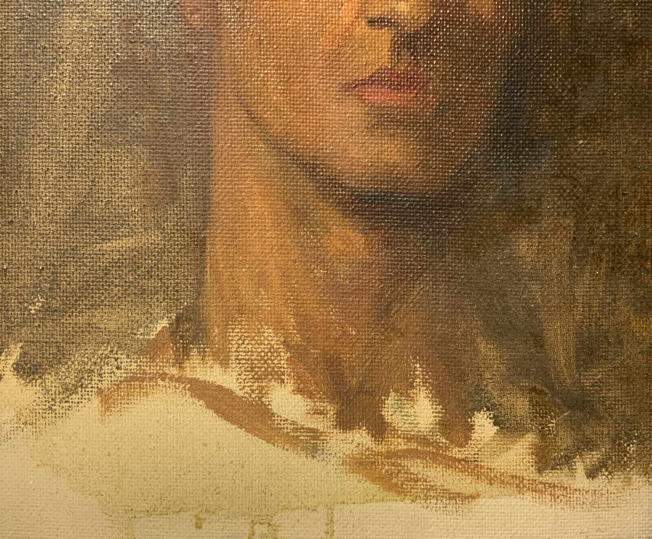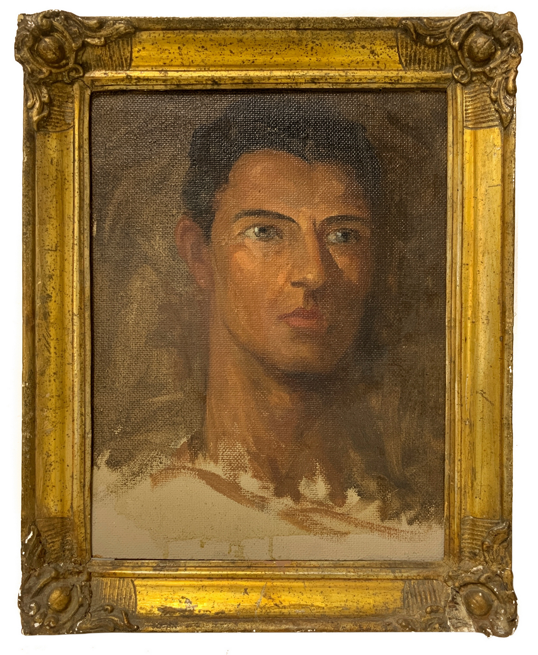 Dipinto ad olio su masonite raffigurante volto di uomo, XX secolo, C.Penna. Cm 40x31 in cornice cm 49x39
