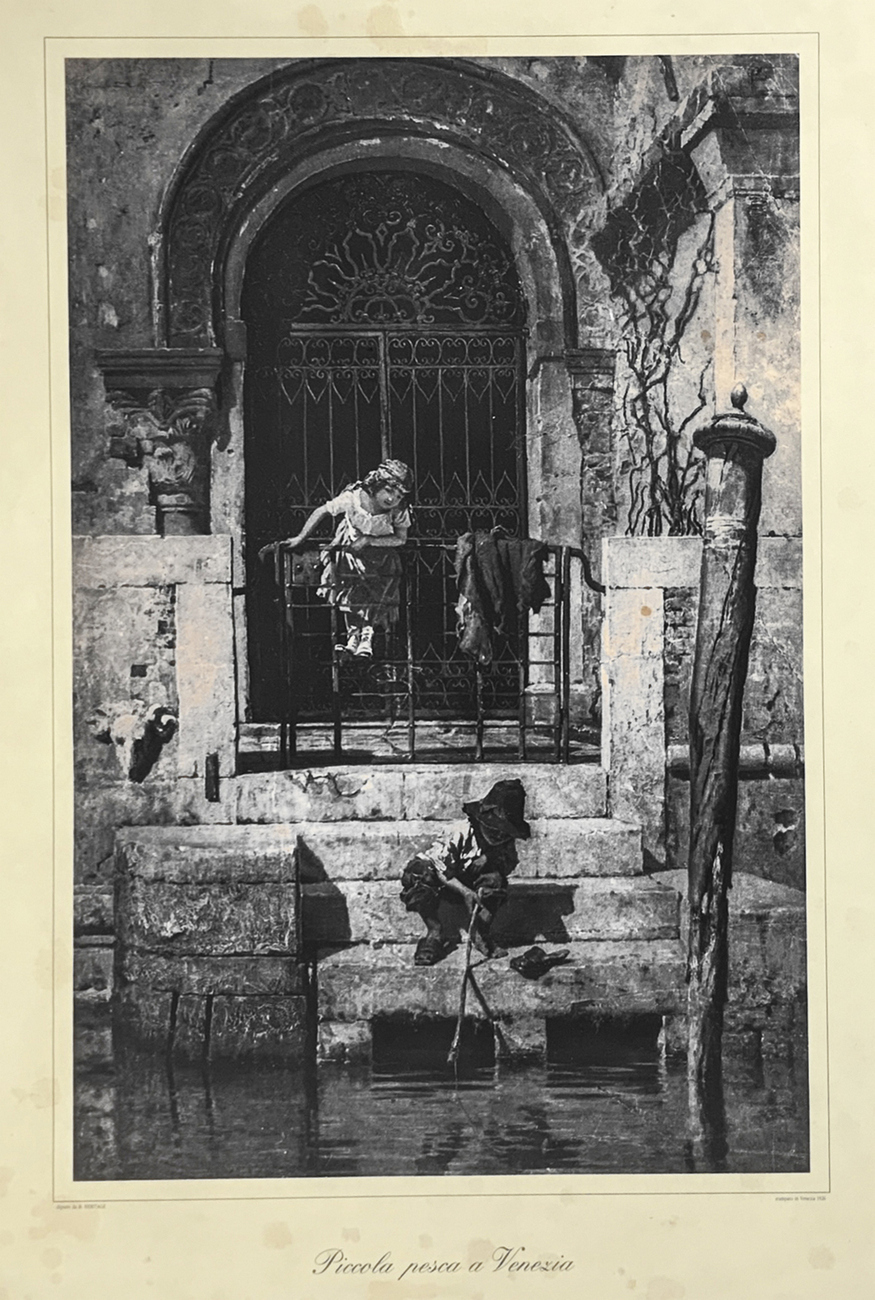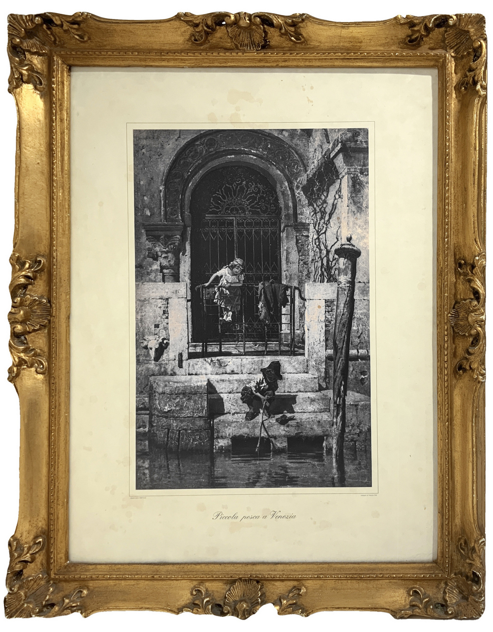 Incisione raffigurante piccola pesca a Venezia. In cornice in legno dorato. In cornice Cm 90x70