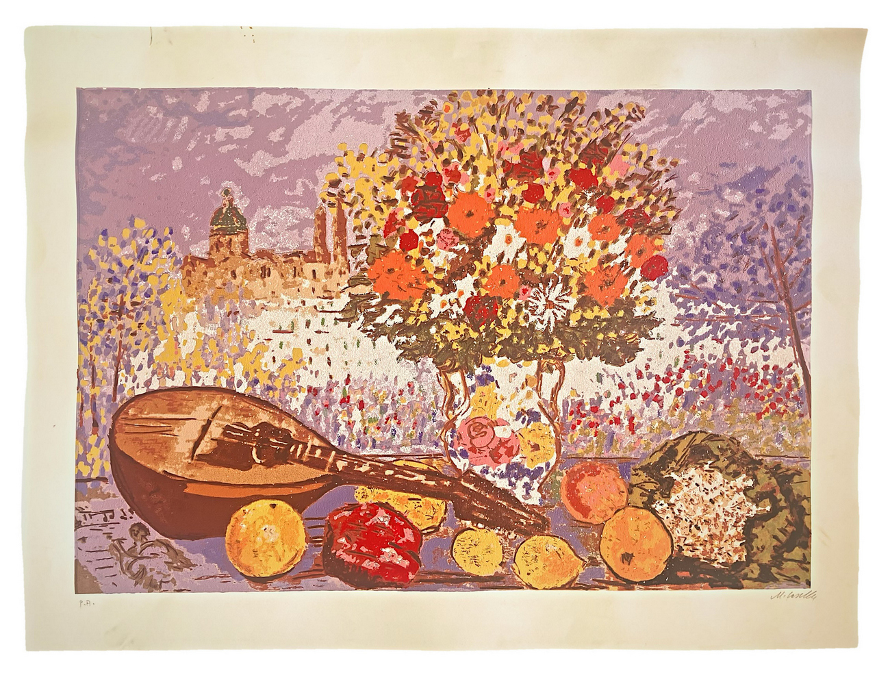Cascella, prova d'autore firmata in basso a destra M. Cascella, raffigurante natura morta. Cm 48x70. Opera sprovvista di cornice