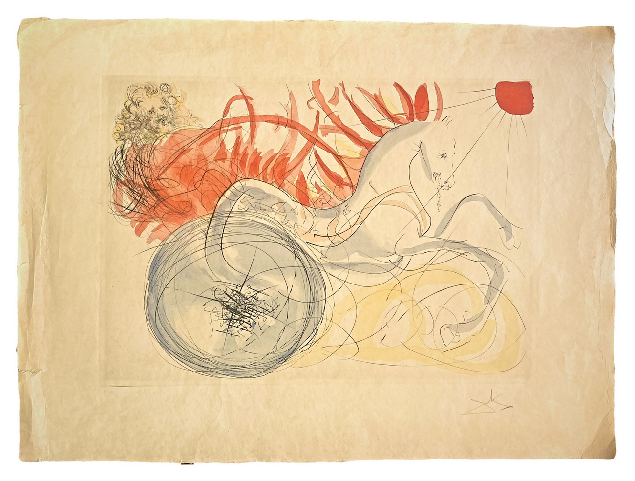 Dalì, prova d'autore firmata in basso a destra Dalì. Misure a tutto foglio cm 57x77. Opera sprovvista di cornice