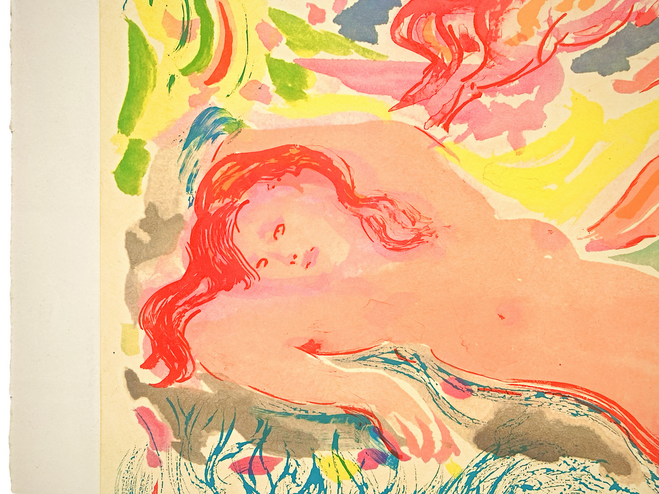 Aligi Sassu, acquaforte, acquatinta e litografia a 13 colori, “Eione La dea della spiaggia”, 2/125, firmato in basso a destra Aligi Sassu e datata 1985. Opera sprovvista di cornice