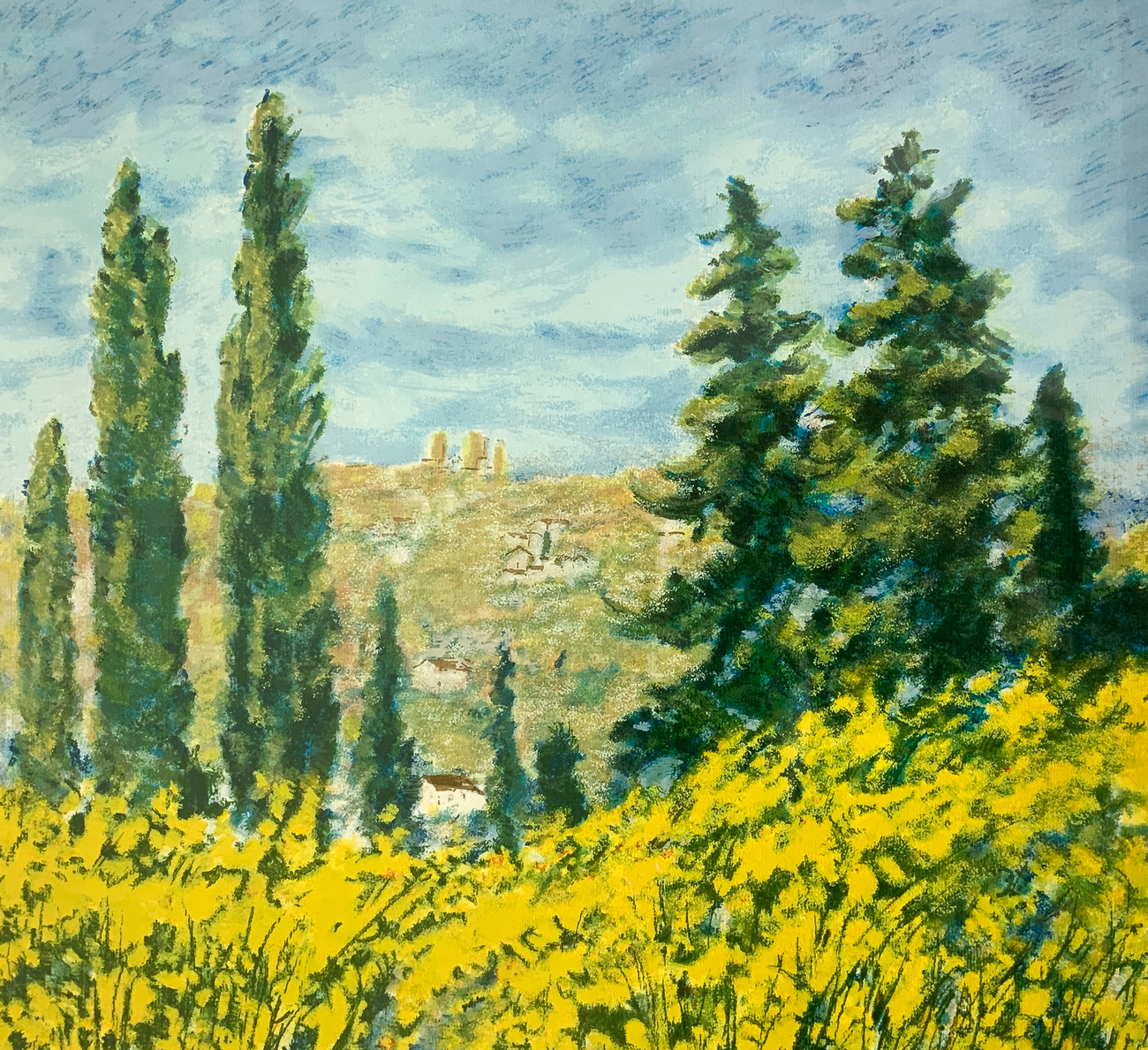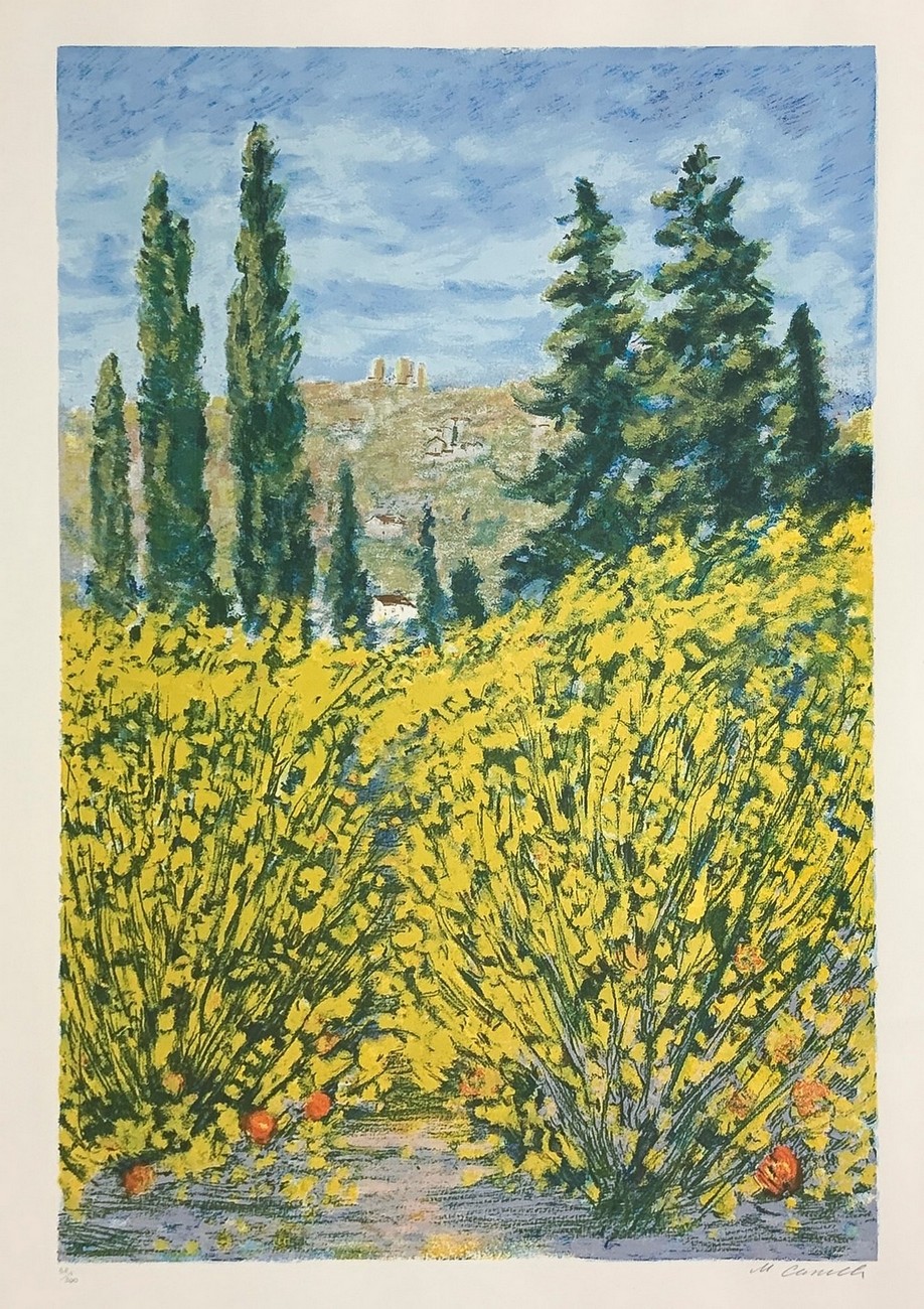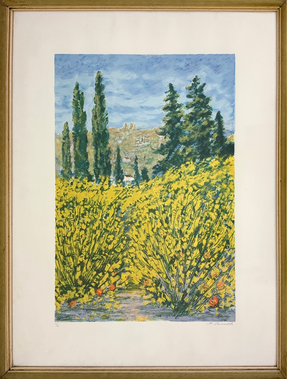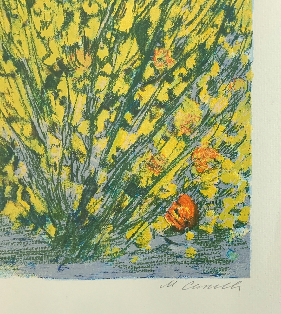 Litografia raffigurante ginestre, 58/200. Firmata in basso a destra M. Cascella. In cornice cm 91x69