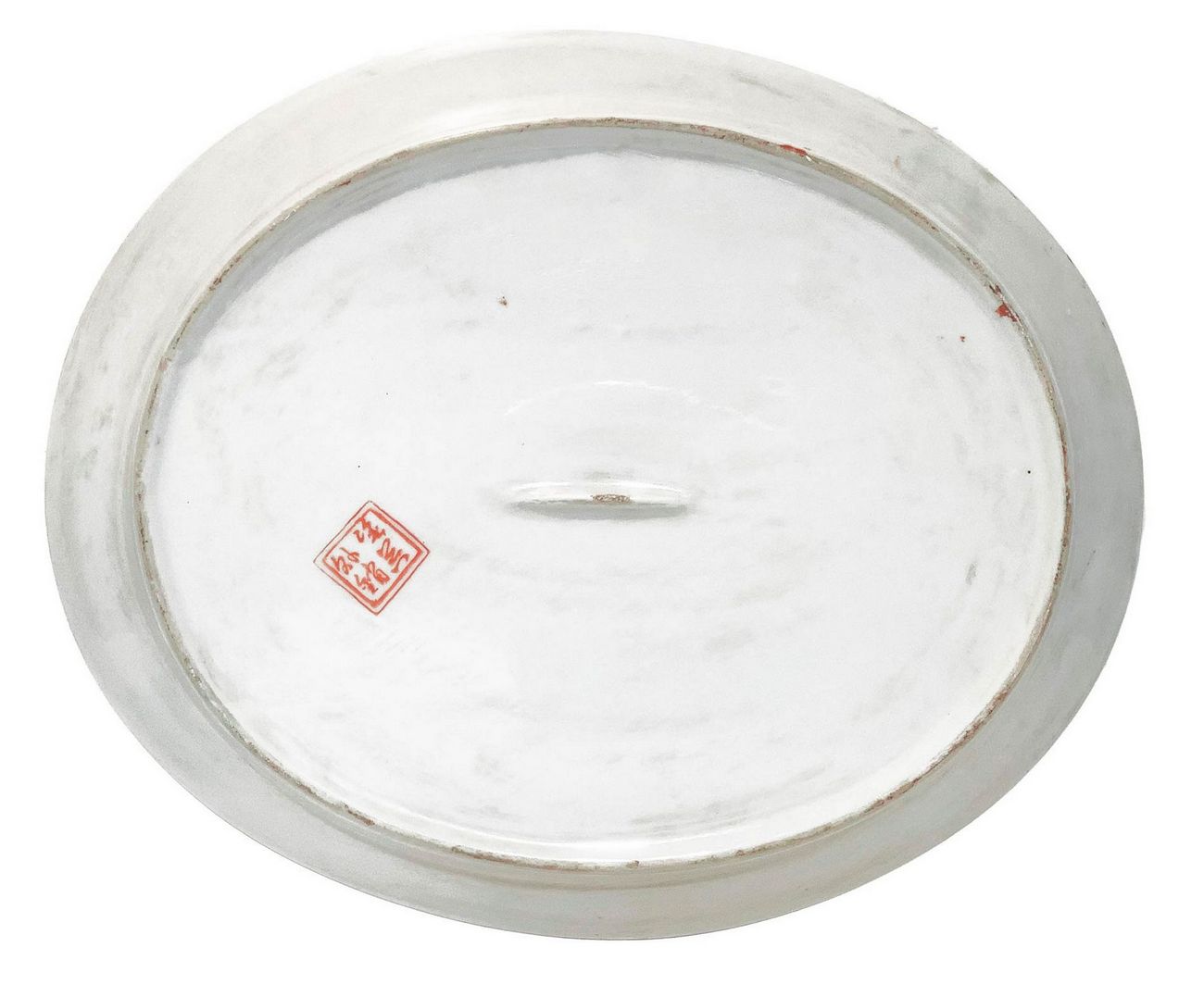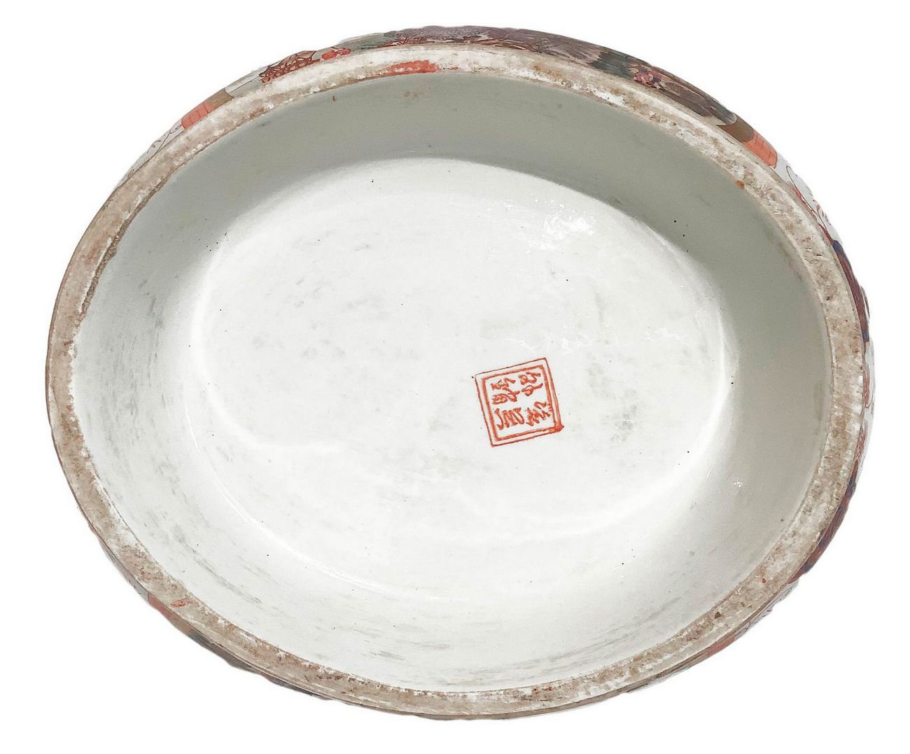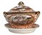 Zuppiera in porcellana cinese con piatto da portata, decorazione di paesaggi entro riserve a medaglione sia sul fronte che sul retro, nel corpo e nel coperchio, inizi XX secolo. H cm 30, Larghezza cm 38.