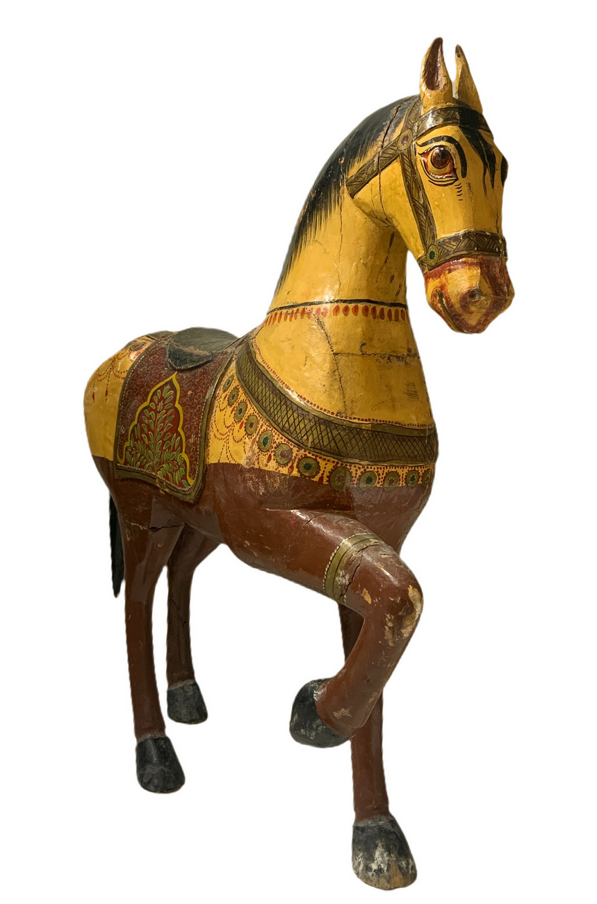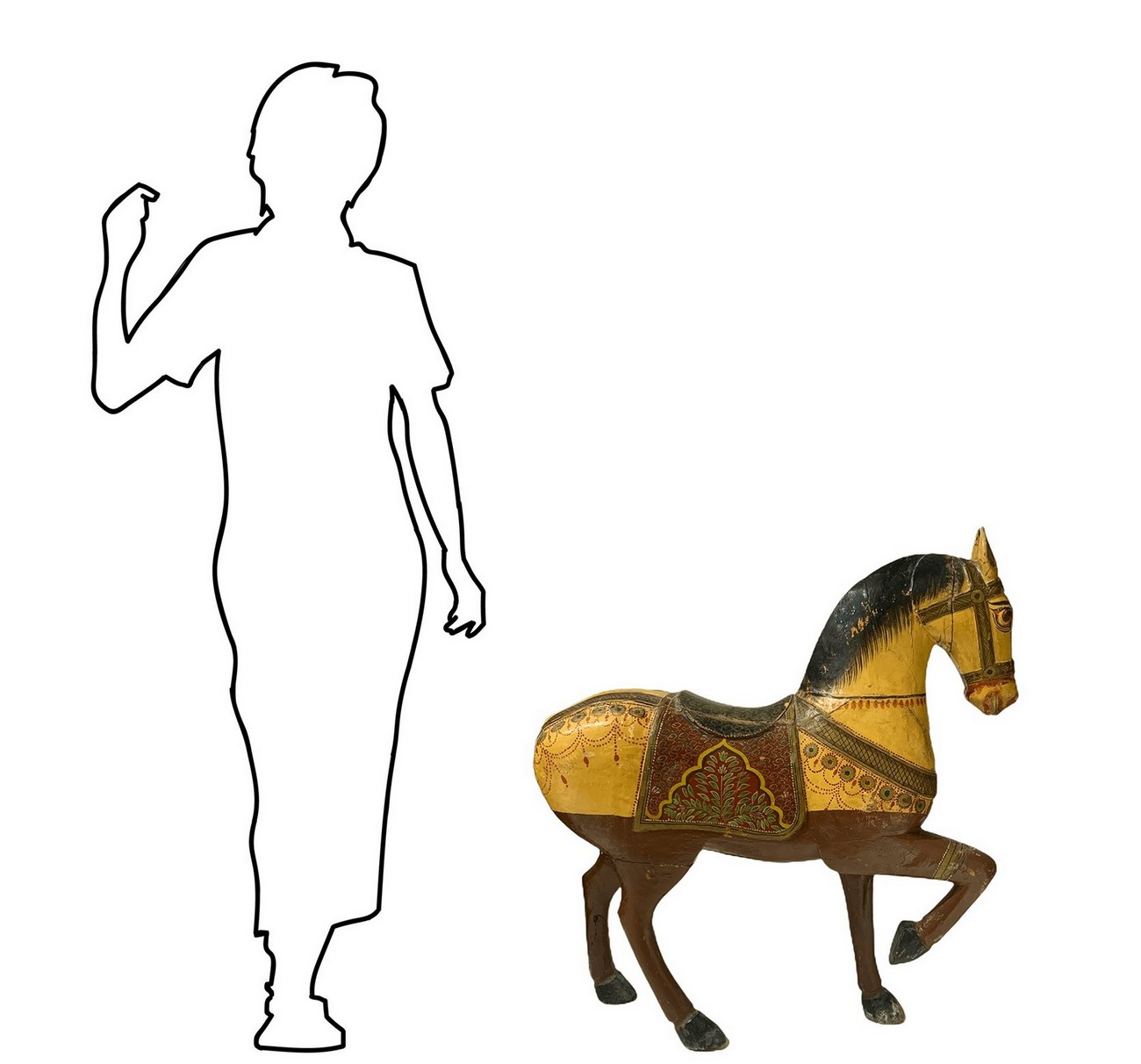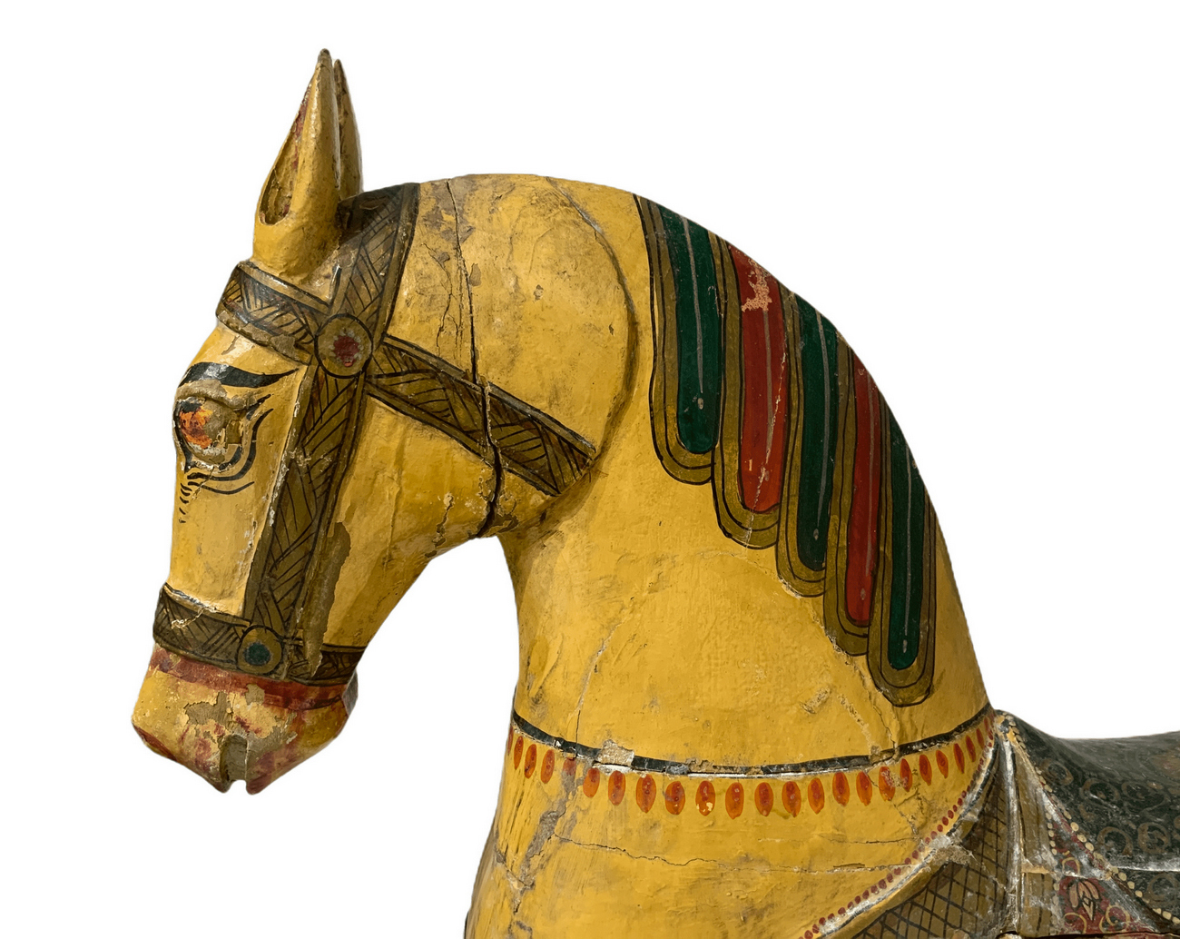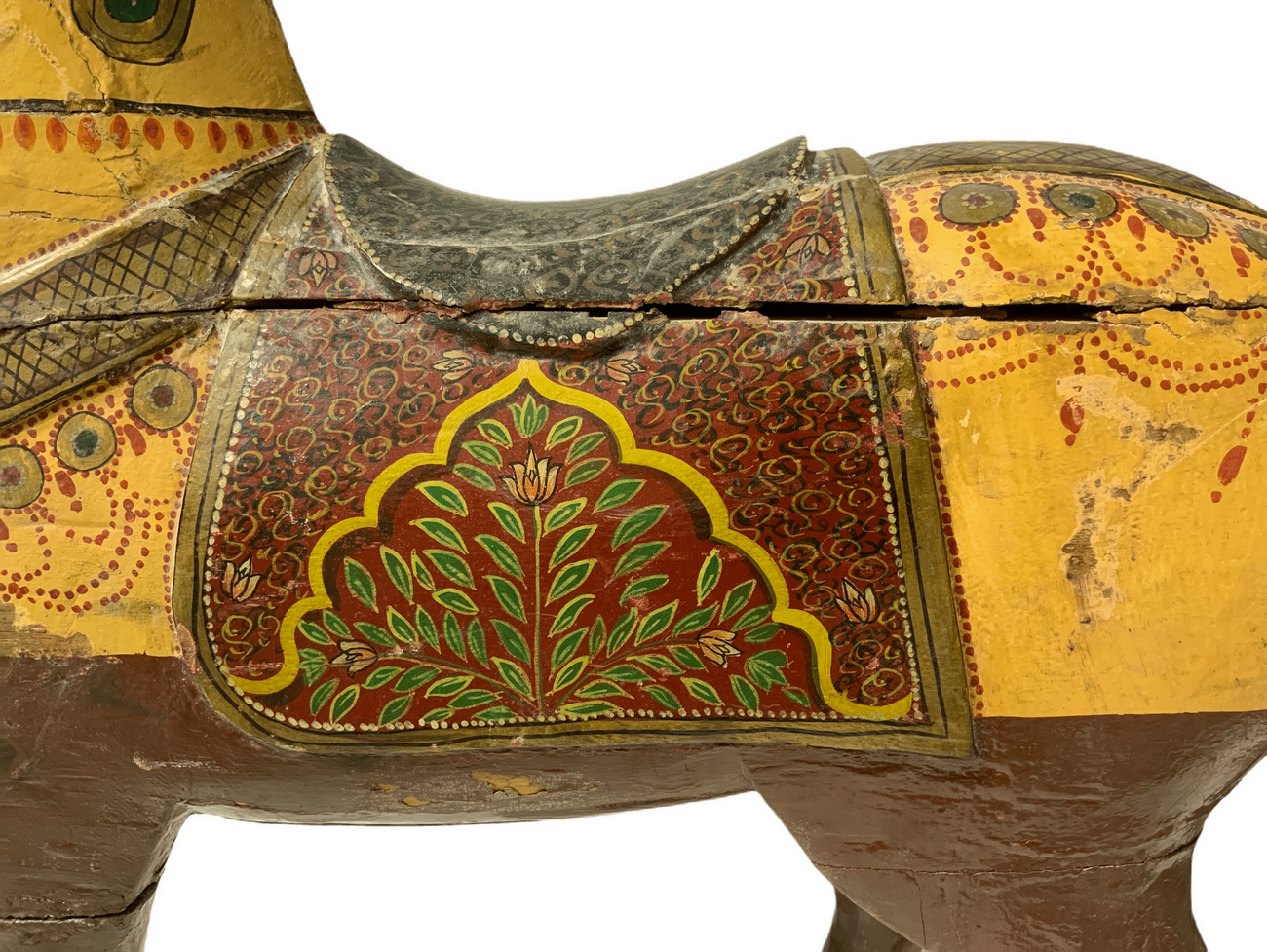 Grande cavallo in legno massello policromo, XIX /XX secolo. H cm 90, lunghezza cm 90 Presenti incollature.