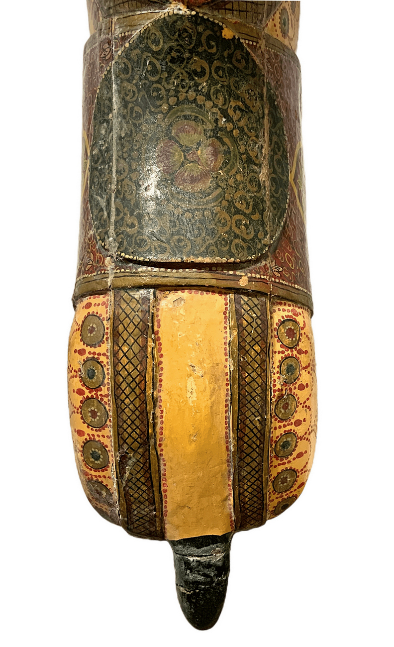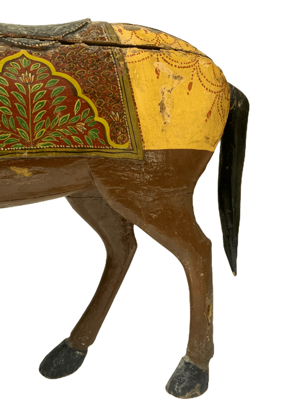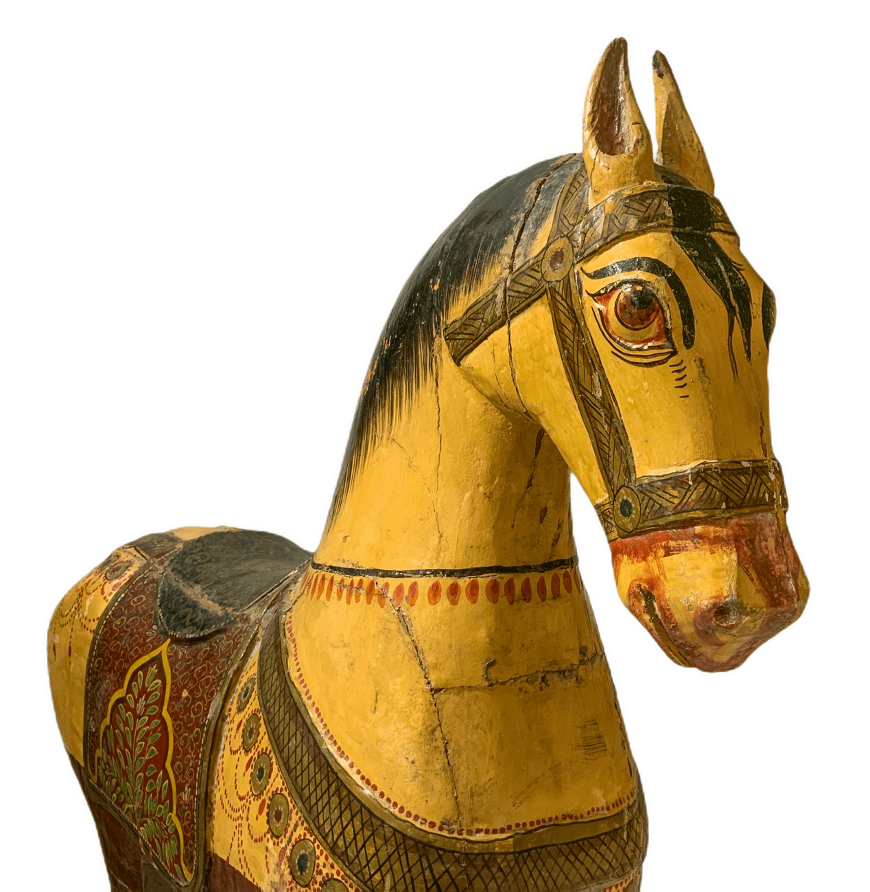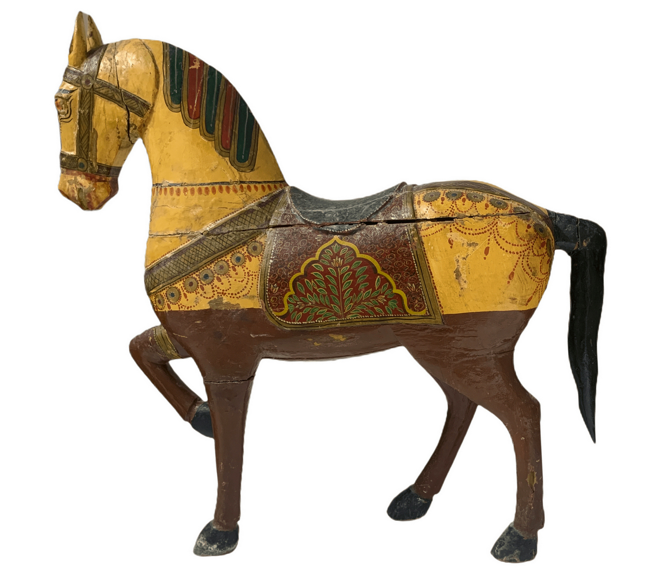 Grande cavallo in legno massello policromo, XIX /XX secolo. H cm 90, lunghezza cm 90 Presenti incollature.