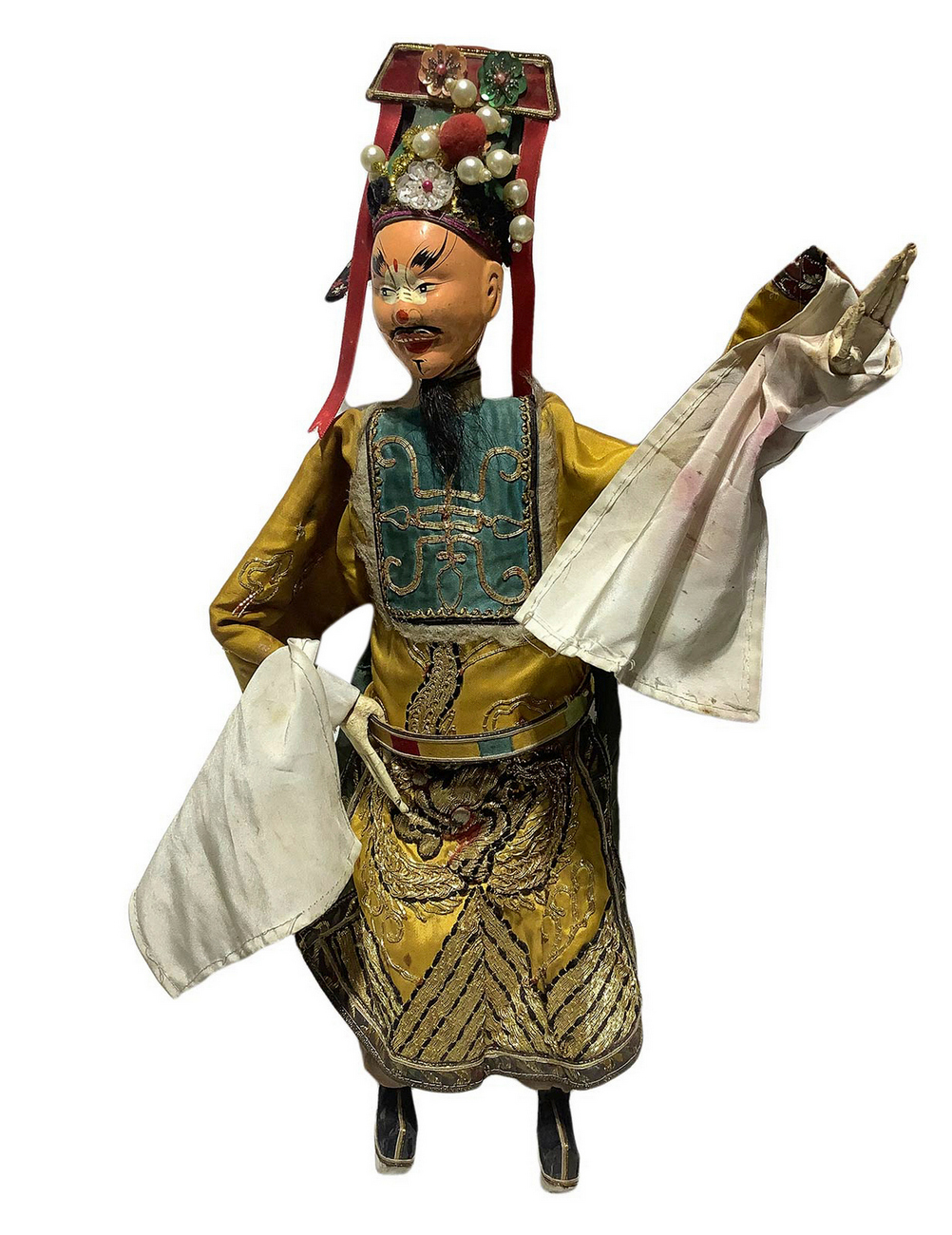 Marionetta orientale, Cina. Testa intercambiabile in terracotta e struttura in legno. H cm 50 circa.