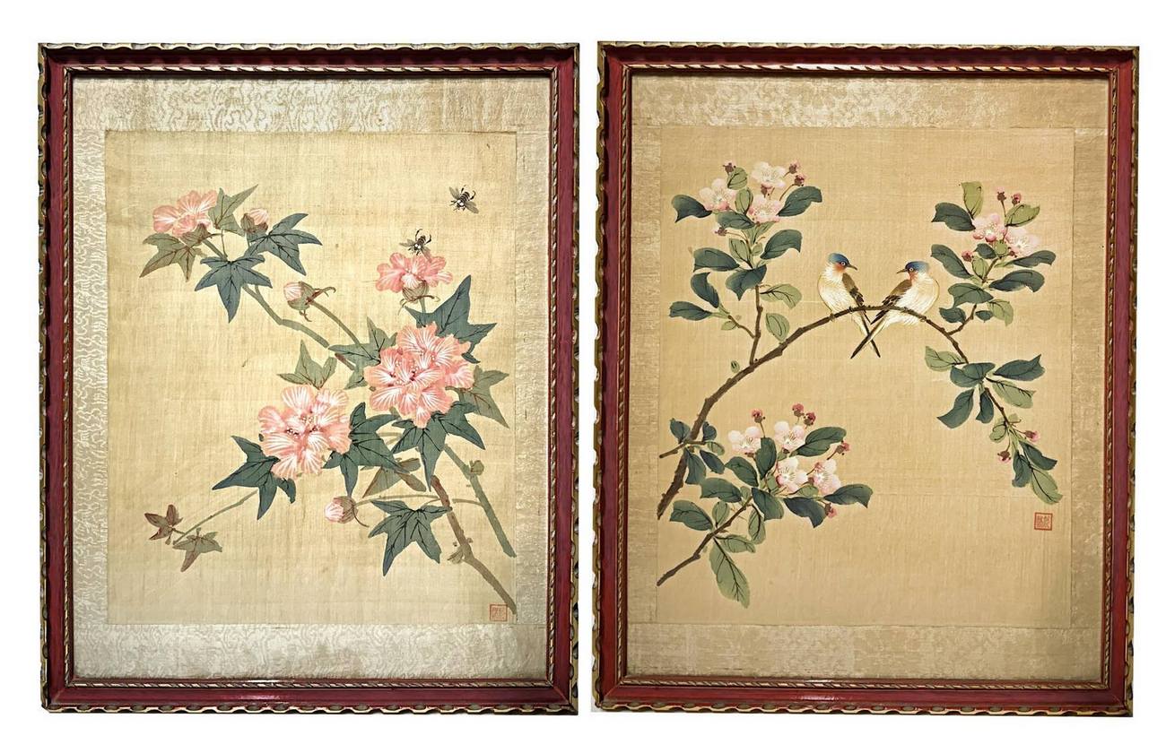 Lotto 351 | Coppia di dipinti su seta, Cina , inizi XX secolo. Cm 37x30, in cornice laccata 49x39.