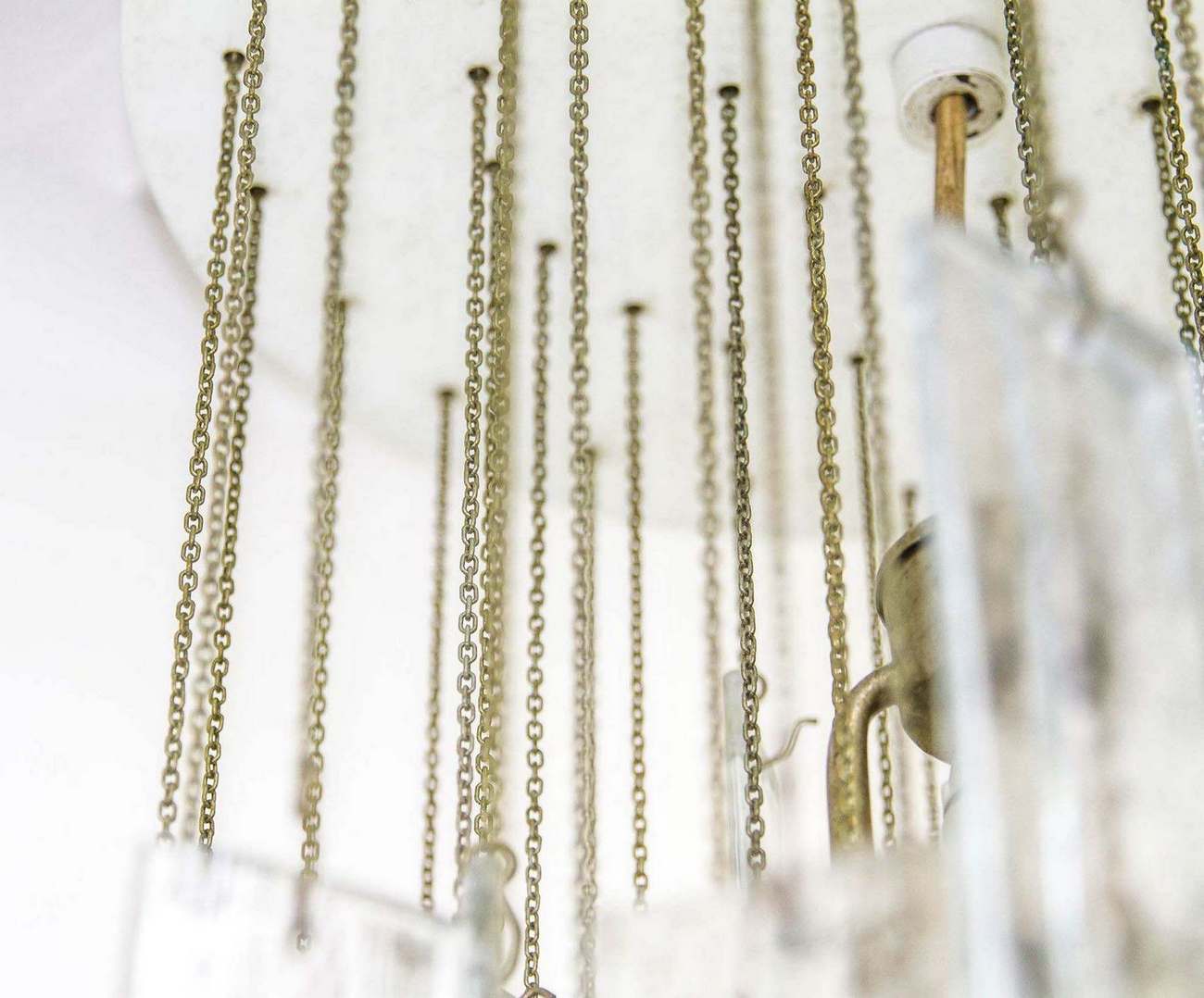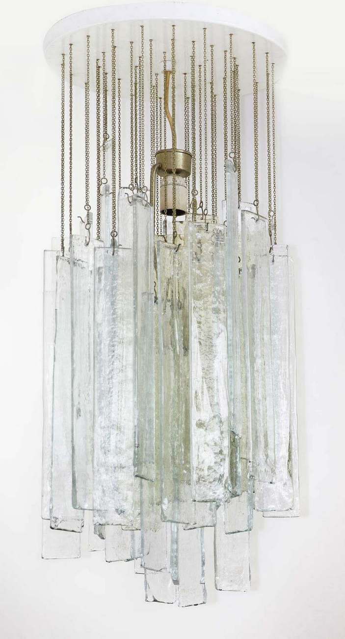 Mazzega, lampadario in vetro e catena ottone, anni '60. Larghezza coppa rotonda, diametro cm 40, h max cm 90.
