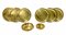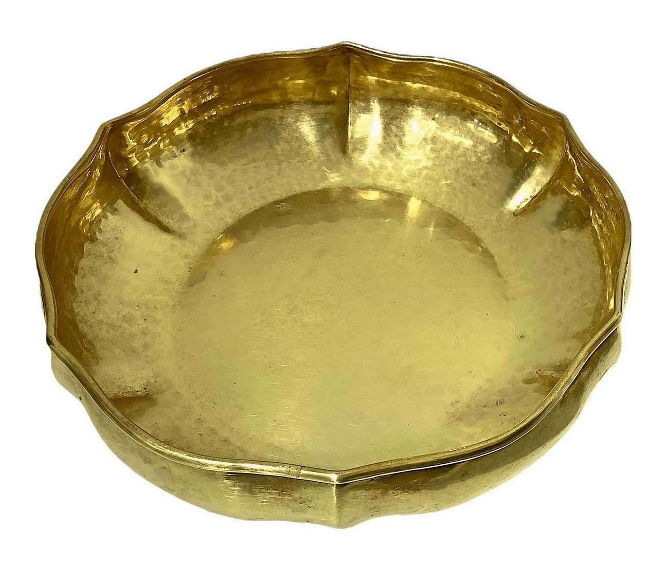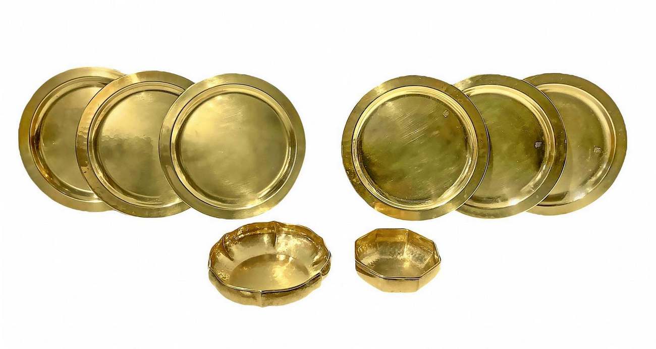 Gruppo composto da n. 6 piatti in ottone e n. 2 ciotole, Job Art, fatto a mano. Diametro piatti cm 25. Diametro ciotola