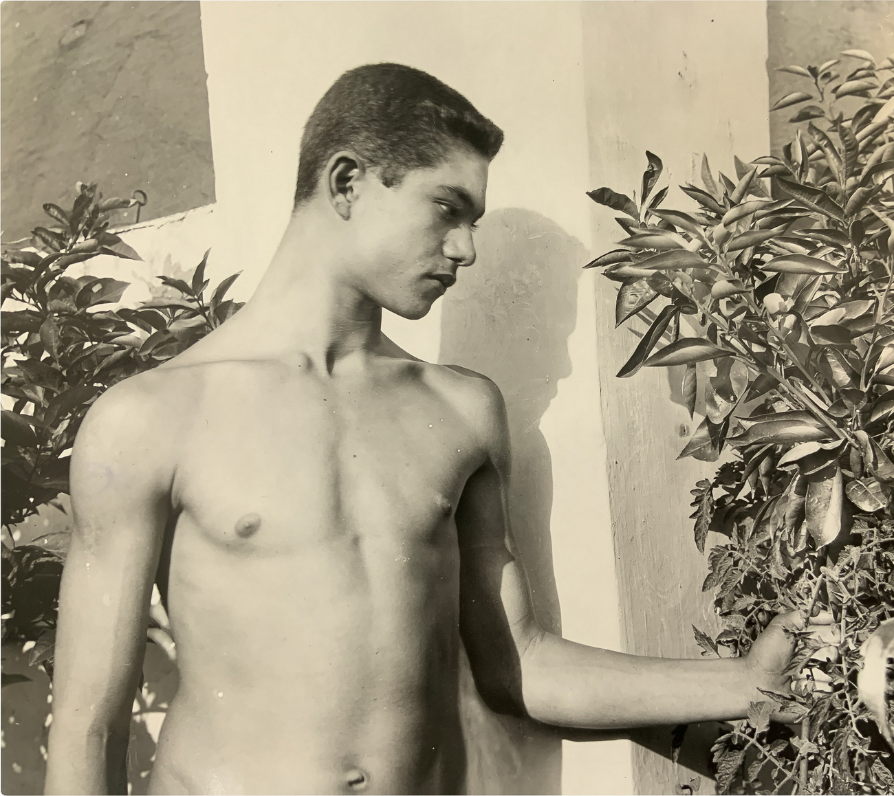 Wilhelm von Gloeden (1856-1931), foto raffigurante nudo di ragazzo. Numerata sul retro 695. Cm 23,3x17. Foto tarda su la