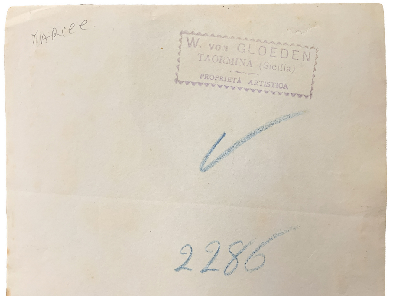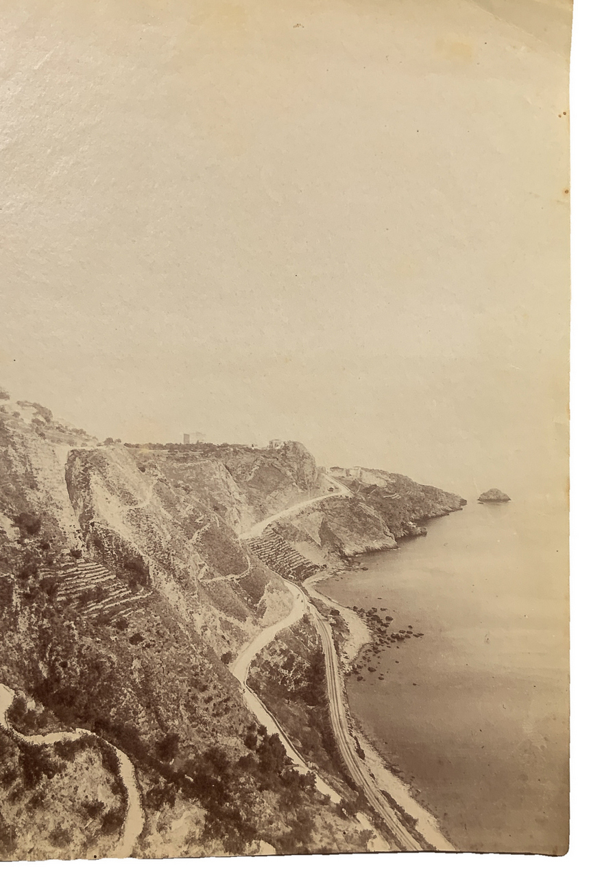 Wilhelm von Gloeden (1856-1931), foto all'albumina raffigurante Capo Taormina. Numerata sul retro 2286 e timbrata. Datat