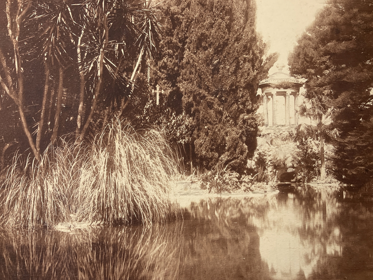 Wilhelm von Gloeden (1856-1931), stampa fotografica vintage su carta salata raffigurante "Villa Tasca Palermo", c 1910.