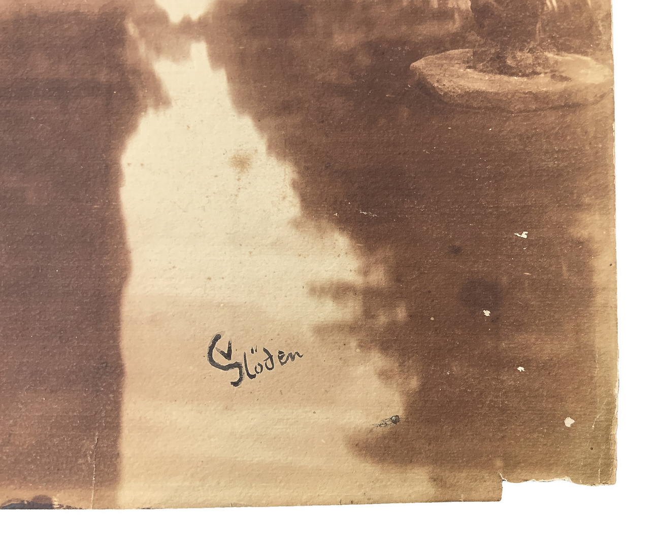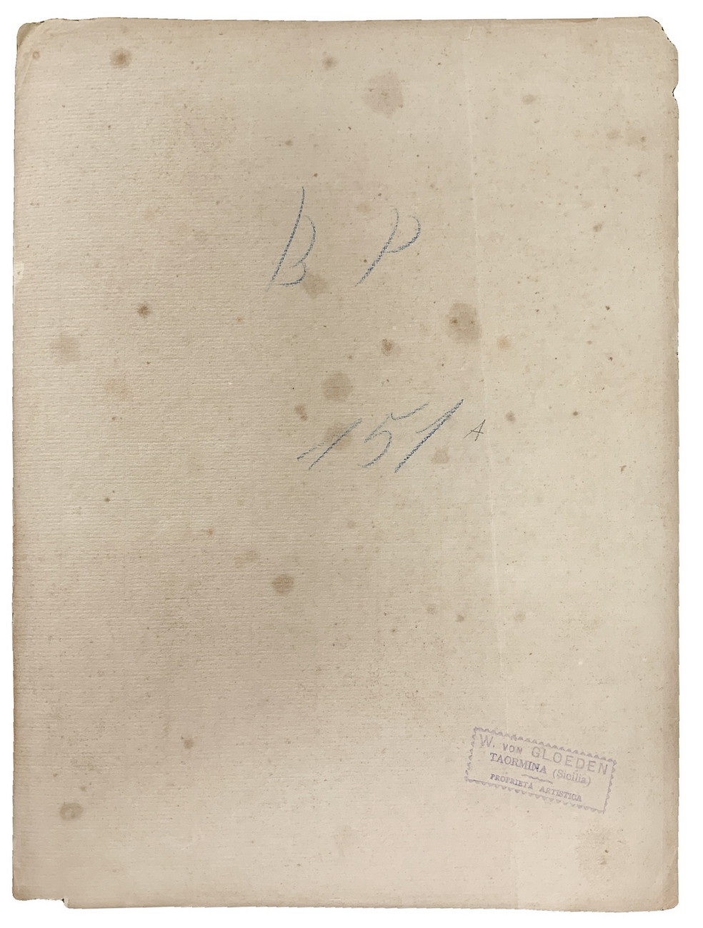 Wilhelm von Gloeden (1856-1931), stampa fotografica vintage su carta salata raffigurante "Villa Tasca Palermo", c 1910. Firmata in basso a destra e numerata “151” e timbrata al retro. Cm 39x29. Presenti macchie di foxing